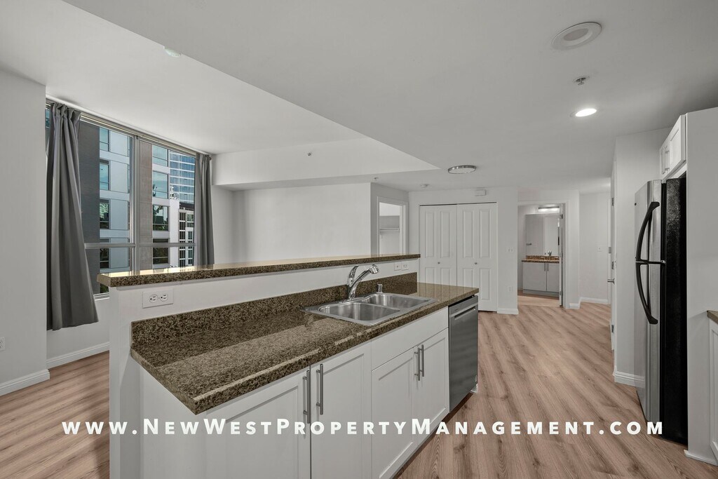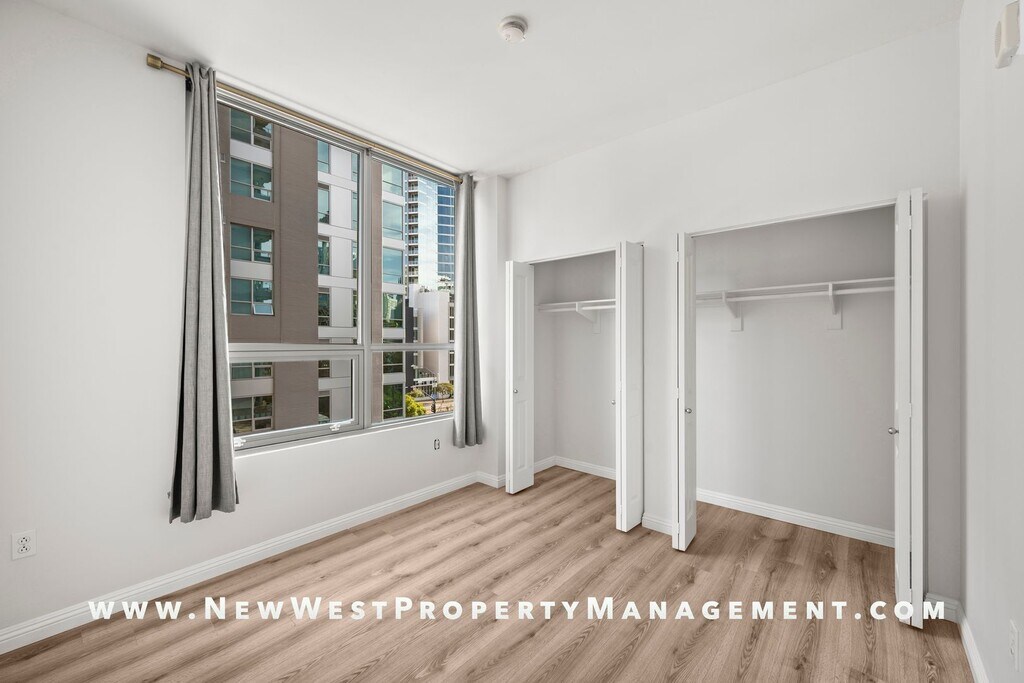 Spectacular Park Terrace 2-bedroom in the heart of the East Village with 2 side-by-side parking spaces! Residence boasts gleaming stone counters in the kitchen and baths, stainless appliances, and an eat-at breakfast bar. Enjoy custom lighting, neutral paint tones, and upgraded luxury vinyl plank flooring throughout. Large balcony and in-unit washer and dryer included. Walk across the street to Petco Park or choose from the myriad of dining and entertainment options right outside your door. Dual pane windows isolate you from the action if desired. Park Terrace is a secured building which includes a modern fitness center, community room with billiards table, and entertainment deck with BBQ’s! Small pet may be considered with restrictions and additional deposit. Available for immediate occupancy. *We may receive multiple applications for this property. We do not necessarily select the first application submitted. Selection of a resident is based upon: 1. Credit history 2. Rental references 3. Proof of Income 4. Number and type of pets, if allowed 5. Move-in date *This property requires a lease start no more than 30 days from application approval. Small pet may be allowed with restrictions and additional deposit.