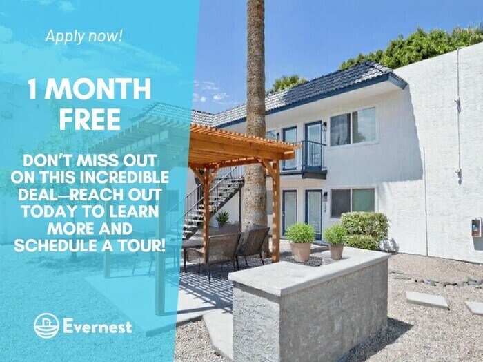 Get 1 Month FREE Rent today! Don't miss this opportunity to save big on your new home—limited-time offer. This 1 bed, 1 bath apartment offers comfort and convenience with 700 sq. ft. of living space. - Microwave, refrigerator, and garbage disposal - Stainless steel appliances and Stone countertops - Central cooling, forced air, and ceiling fans - Off-street parking included - In-Unit Laundry Neighborhood Perks: Close proximity to Cross Cut Canal Park and easy access to AZ-202 for a seamless commute. Pets: Yes to dogs and cats, 2 max. Water/Sewer/Trash are billed back to the tenant at a flat $75 per month. Residents are responsible for all other utilities. Application; administration and additional fees may apply. Pet fees and pet rent may apply. All Tenants are required to enroll in Landlord Property Coverage ($15/mo). A security deposit will be required before signing a lease. Contact your leasing agent for more information The first person to pay the deposit and fees will have the opportunity to move forward with a lease. You must be approved to pay the deposit and fees. Beware of scammers! Please contact Evernest Property Management at before leasing. Evernest will never request you to pay with Cash App, Zelle, Facebook, or any third party money transfer system Contact us to schedule a showing.