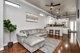 For lease FURNISHED. Modern 3-bed,3.5-bath end-unit townhome in a gated community near the Medical Center,Hermann Park,& Museum District. This updated 3-story home features hardwood & tile floors,high ceilings,abundant natural light,& a private balcony nestled between the flex room & kitchen. The flex room is perfect as a home office or cozy breakfast nook. Entertain in style with a custom dry bar (yes,there’s a wine fridge!) & a bright open layout. The chef’s kitchen boasts Taj Mahal quartzite counters,marble backsplash,pot filler,new stainless appliances,pantry,& a large island. Each bedroom has its own full bath for ultimate comfort. The dreamy primary suite includes dual vanities,jetted tub,separate shower,& walk-in closet. Additional features: tankless water heater,fresh paint,updated half bath,full-size washer/dryer,2-car garage,& fenced front yard. Ideal for professionals or families with quick access to Rice,UH,Midtown & more. Available now. MLS# 42004561