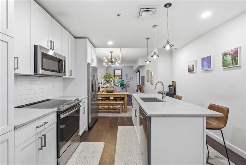Located in the heart of the Strip District, The Refinery offers the best of city living! This open-concept 1 bedroom 1.5 bathroom unit is absolutely stunning and features a spacious entry adjacent to a convenient half bath, a beautifully appointed kitchen with stainless steel appliances, granite countertops and plenty of storage, a designated dining area, and a cozy living room with lots of natural light. Walk through the living area to the large bedroom which connects to a walkthrough hallway with tons of closet space on both sides! The incredible en-suite full bath has a spa-like stand-alone tub-in-shower combo and a double vanity. This unit also includes a full-size stacked washer & dryer and an assigned integral garage parking space. The building amenities include a rooftop terrace, lounge and fitness center. Walk to all of the attractions of the Strip District - restaurants, shops, The Terminal, The River Front Trail & more! Convenient access to downtown, I-376 and Rt. 28.