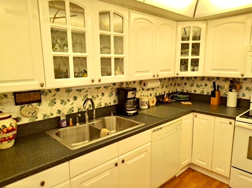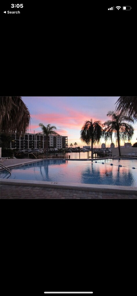 One or more photo(s) has been virtually staged. One or more photo(s) has been virtually staged. Corner unit with both bedrooms offering water views! Live the tropical beach lifestyle at Dolphin Point. Dolphin Point is a waterfront community that offers a waterside pool,dock,walk to Publix and cafes,and short walking/biking distance to the sugar sand of beautiful and exciting Clearwater Beach with all its restaurants,music,festivals,Pier 60,and so much more! Schedule a viewing today! Guest bedroom includes a built-it Murphy bed (can be removed if requested). MLS# TB8396659