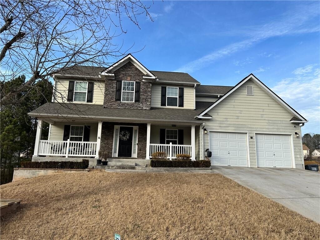 Spacious two-story home in the Stone Ridge community offering a flexible layout with multiple living areas,a finished basement,and a private fenced backyard. The main level features an open living room with fireplace,an eat-in kitchen with island and stainless steel appliances,plus a bedroom and full bath ideal for guests or a home office. Upstairs includes a generous primary suite with tray ceiling,soaking tub,and walk-in closet,along with additional bedrooms. Enjoy a two-car garage,abundant storage,and a sidewalk-lined neighborhood with streetlights,conveniently located near shopping,dining,schools,and easy access to Covington,Conyers,and major commuter routes. *Basement level not for rent. Only main & 2nd floor available. MLS ID 7718075