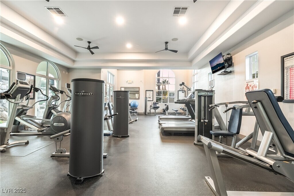 Karin ComeauxExperience resort-style living in this exquisitely decorated 2-bedroom, 2-bath 2 car garage condo featuring two primary suites, each with a private bath and walk-in closet. Enjoy breathtaking Strip and city views from your private covered veranda with ceiling fans. This turn-key, fully furnished home includes high-end furnishings, TVs in every room, a cozy fireplace, and all cookware, plates, and silverware. The Gorgeous kitchen boasts granite counters, subway tile backsplash, shaker soft-close cabinets, and stainless steel appliances. Located in a gated 55+ community with secure building access, residents enjoy resort amenities sparkling pool with waterfall & spa, updated clubhouse, fitness center, and outdoor living area with big screen TV. Includes a 2-car garage, water softener, and ample guest parking. Convenient Anthem location close to shopping, dining, and entertainment. At least one occupant must be 55+. No one under 18 may reside more than 30 days.