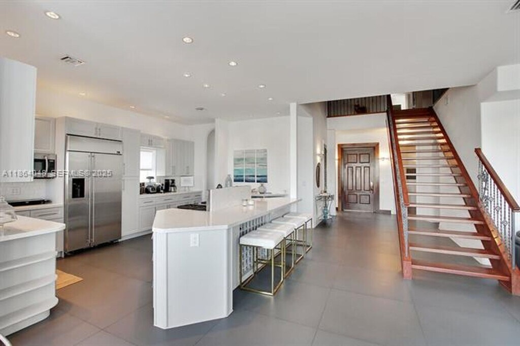 - waterfront house in Maimi Beach~~Gorgeous waterfront estate on exclusive Palm Island with guest house and 5 car garage. Enjoy sweeping bay views from your private dock, pool deck, and balconies. Designed for both grand entertaining and intimate living, the open-concept layout flows seamlessly from family room to the gourmet kitchen and wet bar--perfect for those looking for exclusivity, boat lovers, and families alike. A separate guest suite with its own full kitchen and bath offers privacy and flexibility for visiting family, staff, or long-term guests. Includes 5-car garage and 2 boat slips. Located on prestigious Palm Island, residents enjoy exclusive access to tennis courts, a covered playground, basketball court, picnic areas, and 24/7 guard-gated security--ensuring peace of mind and a true sense of community