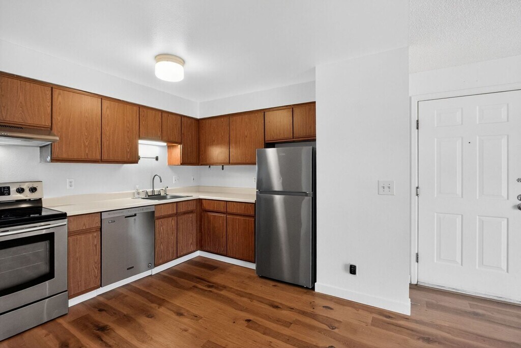 Updated, open and attractive 2 bed, 1 bath condo at Hunters Run Condominiums in the SE Denver area (just north of DTC). Condo lease is available for 6, 7 or 8 months. 12-month lease renewal can be available after that. Ground floor level, central A/C, large 40-gallon hot water heater, full-size Maytag W/D, dishwasher, wood-burning fireplace, outdoor patio with additional storage space for your bikes, outdoor swimming pool and hot tub. Plenty of free off-street parking for you and guests. Surrounded by condo owners who live a quiet home life. Owner pays water, sewer, trash, snow removal, grounds maintenance - tenant pays electric/gas, cable, internet. Maximum of one indoor cat allowed, $200 refundable deposit, no pet rent. Across the street from the Highline Canal walking path and the Cherry Creek bike trail is 1/2 mile away, taking you to either downtown Denver or to Cherry Creek State Park/Reservoir that's only five miles away. Golfing nearby at Kennedy Golf Course, Wellshire Golf Course or Cherry Creek Country Club. Located in unincorporated Arapahoe County (no city tax on delivered items and purchased automobiles!) and Cherry Creek School District. It is 5 minutes away from both DTC (Denver Tech Center) and Aurora, 15 minutes from Cherry Creek and downtown Denver, 10 minutes from Denver University. Close to both I-25 and I-225. Shopping at Tamarac/Tiffany Plaza (Whole Foods), New Gardens on Havana (Sprouts), Costco, Cherry Creek Mall. Close access to multiple Light Rail Stations, and 1/2 mile to beautiful Bible Park. No smoking, vaping or drugs. No prior evictions. No administrative fee or high application fee to pay! Renters Insurance is required. Excellent credit and rental references are required. Applicants are required to provide a copy of a valid form of identification. Only complete applications will be processed.