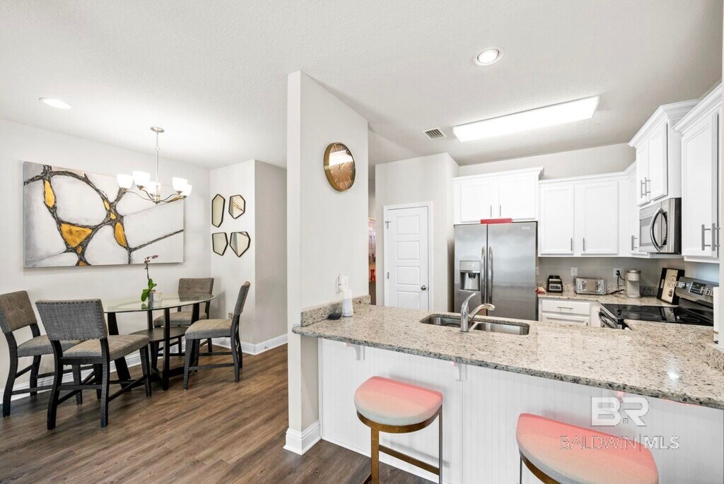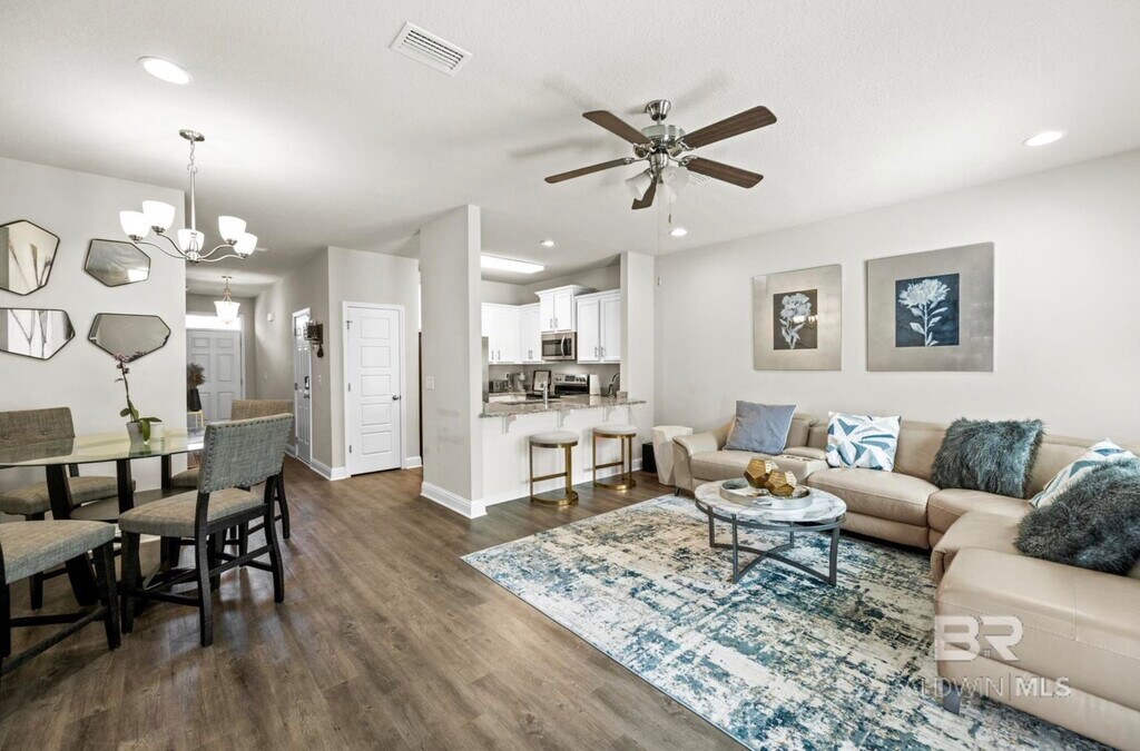 Don't miss out on this beautiful 3/2 unit in Daphne with great amenities. This community is gated and offers a since of security. The home features upgrade luxury vinyl flooring throughout,a nice open kitchen and floorplan,tall ceilings,and a single car garage. There is a private back terrace area and the community has a nice inground swimming pool. No pets allowed,no smoking,unit is NOT furnished.