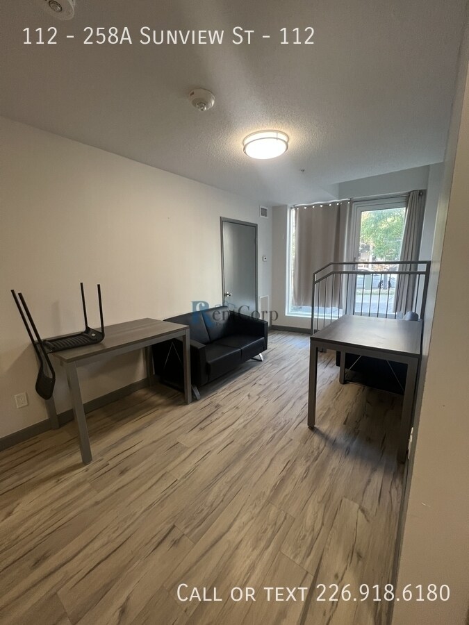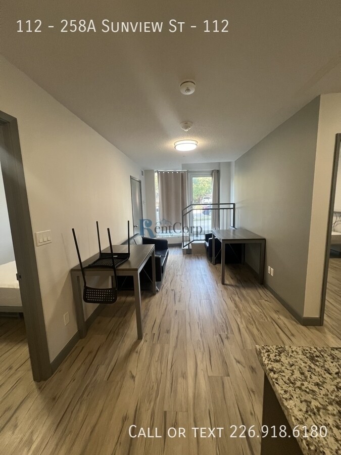 Premium Student Living – 2 Bedroom + 1 Bathroom for $1970/Month + Hydro $200 DISCOUNT FOR FIRST 3 MONTHS Available IMMEDIATELY 258A Sunview Street, Unit 112 – Waterloo, ON Secure your spot now – limited availability remaining! This modern 1-bedroom + den unit is located in the heart of Waterloo's student district, just steps from University of Waterloo, Wilfrid Laurier University, and Conestoga College's new campus. The den includes a bed and has previously been used as an additional bedroom, making this unit perfect for two occupants. - Rent: $1970/month + hydro - Internet included - In-suite laundry (washer & dryer) - Fully furnished - Minimum 1-year lease - Parking available on-site via Honk Mobile App Unit Features: Modern finishes throughout the suite, including kitchen and bathroom upgrades Energy-efficient building Stylish and functional furnishings Convenient layout with private living spaces Ideal location – walk to campus, restaurants, and amenities Same-day showings available – book now: To apply: Complete our quick and easy application at: Floor plans available under the “More” section at: www.rentcorp.ca For more information, please contact: ext. 2 Don't miss your chance to live in one of Waterloo's most sought-after student residences!