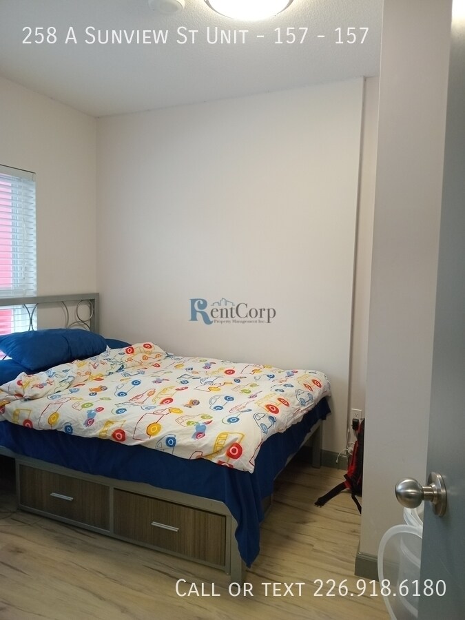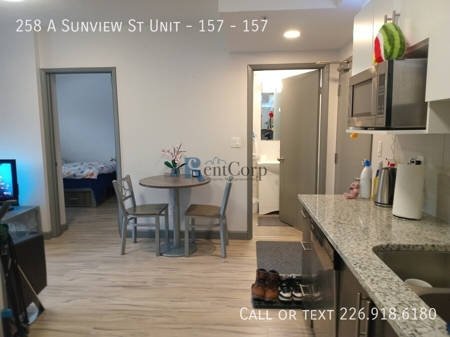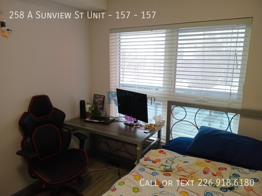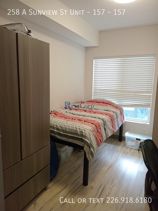 258 A Sunview St - 157 Waterloo, ON. N2J 2Z2 $1900 + hydro 1 Den + 1 Bedroom, 1 Bathroom (den contains bed and has previously been used as additional bedroom) STUDENT LIVING AT ITS BEST! | 258 Sunview Suites - Waterloo, ON Available September 2026! Minimum 1 year leases. These beautiful, fully furnished units are disappearing fast! Rent includes internet and an in-suite washer and dryer! Parking is available on-site, managed separately through the Honk Mobile App. Property Features Include: - Prime location! Ideal for students of UW, Laurier, or Conestoga College's new campus. - Modern and stylish - Energy-efficient building with beautifully finished suites and upgrades throughout the entire unit, including kitchen and bathrooms. For quick approval and assignment, please complete an application at: Floor plans available under the "more" section at www.rentcorp.ca Don't miss out on your perfect student living space! To discuss property details, email or call ext. 2. Don't miss out on your perfect student space—secure it today!