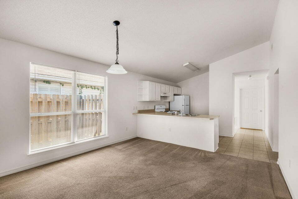 This nice home offers an amazing open floor plan for the dining, living and kitchen area. Master suite has it's own bath. Back yard has a chain link fence and is next to a fun/curvy walking trail that goes behind all of the homes on this small block. Flooring is carpet and tile throughout. Sorry no pets allowed. All Coastal Realty Services residents are enrolled in the Resident Benefits Package (RBP) which includes renters insurance, HVAC air filter delivery (for applicable properties) and our best-in-class resident rewards program, and much more! More details upon application.