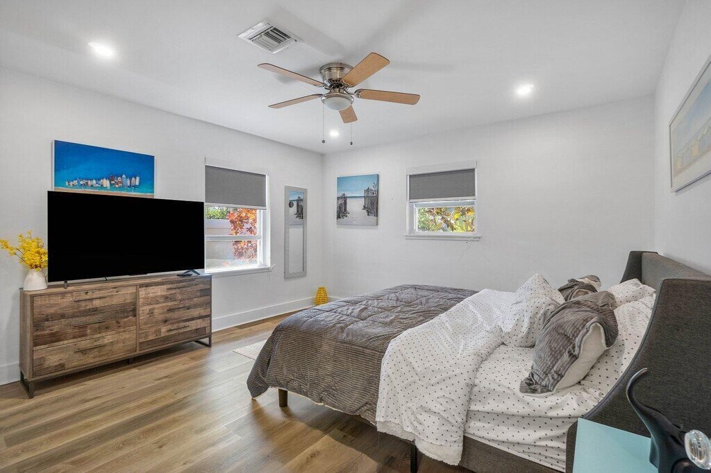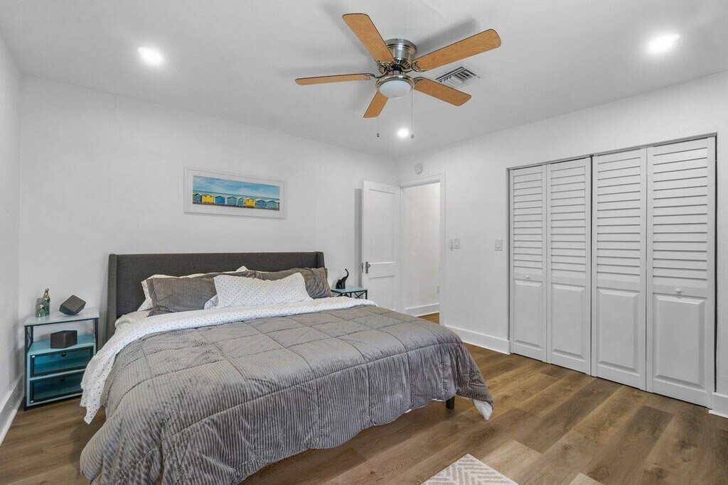 Walk to vibrant Atlantic Avenue and 5 minute stroll to Pineapple Grove Village. Only 1 mile to the beach from this beautifully updated cottage. This fully furnished and turnkey 2-bedroom, 1-bath apartment is located in the heart of Delray Beach. Available for annual lease or a minimum of four months during season and/or off season. This home comes fully equipped with everything you need to make you feel at home. Featuring a brand-new kitchen with new appliances, impact windows+shutters, new flooring throughout, both bedrooms comfortably accommodate king-size beds. Enjoy a fully equipped kitchen, security system, and a shared full-size washer and dryer on the property. Relax in the large fenced yard with a screened-in patio for your unit.No Cats. Dog are welcome with