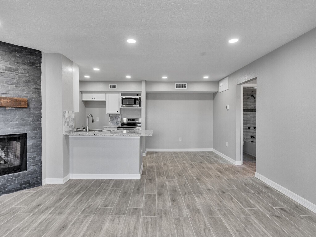 Location,location location. Nice condo ready to immediate move in. Freshly painted 2 bedrooms and 2 full baths. First floor. Relax in your living room with a brick wood fireplace with access to your private balcony and storage space. Tile throughout the whole unit. Refrigerator,Washer and dryer included. Fitness center,pool and tennis court on site. Close to IH 45,shopping centers,restaurants and schools. WATER/SEWER INCLUDED IN YOUR RENT. MLS# 98904233