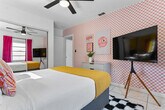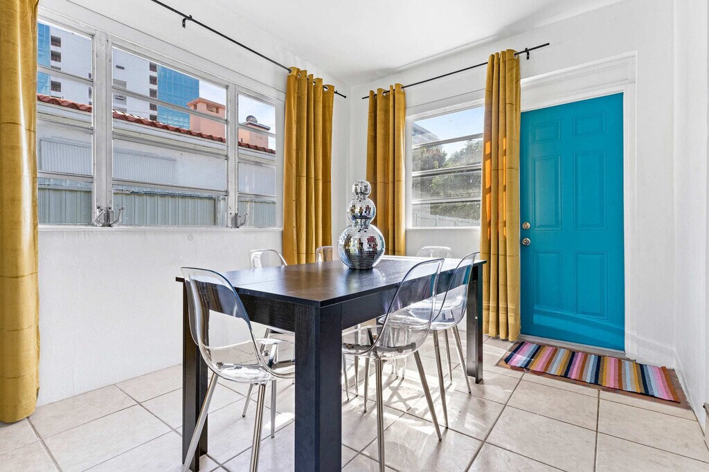 Welcome to a one-of-a-kind Miami retreat where vintage charm meets modern comfort. This retro-inspired gem is a playful nod to mid-century design, featuring vibrant colors, funky decor, and a layout that invites you to relax in style. Nestled in the heart of Miami, you're just minutes from the city's hottest spots, whether it's the vibrant nightlife of Wynwood, the sandy shores of South Beach, or the culinary delights of Little Havana. Whether you’re soaking up the sun outdoors or cozying up inside, this home offers the perfect balance of relaxation and adventure. Ideal for families, couples, and groups, the property boasts a large private fenced backyard, BBQ and outdoor dining, and three spacious bedrooms in a tranquil neighborhood close to Miami's best. The master bedroom features a queen-size bed, ample storage, smart TV, and lots of natural light. The second bedroom includes a full-size bed, while the third bedroom offers two single-size beds, all with ample storage and natural light. The fully stocked kitchen with updated appliances, dishwasher, coffee maker, and toaster has everything you'd need to cook at home during your stay. The spacious living area features plenty of comfortable seating, a smart TV, and flows seamlessly into the dining area with seating for six. The outdoor space is beautifully designed with dining and seating areas, fully fenced for complete privacy. Pets are welcome with a $150 fee per pet. Advance notice of pet number and weight is required. Convenient parking is available on the premises for up to three vehicles. We offer concierge services to our guests, including boat rentals, chef services, and massages, arranged upon request. Housekeeping during your stay is available upon request and at your cost. We reserve the right to assess fines for excessive cleaning, trash removal, and property damage. Located in Miami's Design District, a lively neighborhood that’s all about creativity and style, you can stroll through streets lined with high-end boutiques, trendy cafes, and incredible art galleries. Enjoy a bite at a chic eatery or sip a cocktail under the stars – the Design District is your perfect playground for fashion, food, and fun. Wynwood is just a 5-minute drive, Downtown Miami is 13 minutes away, Miami International Airport is 5 miles, Hard Rock Stadium is a 15-minute drive, and Miami Beach is 10 miles away. Check-in is after 4 PM and check-out is before 11 AM, with early or late options available upon inquiry. A check-in procedure for security and fraud prevention will be conducted. The property adheres to CDC cleaning and sanitation protocols, ensuring thorough disinfection. Surveillance cameras monitor the property's exterior for added security. The property has a groundskeeper who may access the pool for service, landscaping, and other upkeep needs for exterior grounds. There is a strict no-smoking policy and low noise levels are required post 10 PM. Parties and large gatherings are prohibited. Quiet hours begin at 10 PM. Book for the exact number of guests; no additional guests without approval. Subletting is not permitted. Includes WiFi, Smart TVs, ironing set, laundry facilities, and starter toiletries. Note: Washcloths and kitchen towels are not included. [SI]