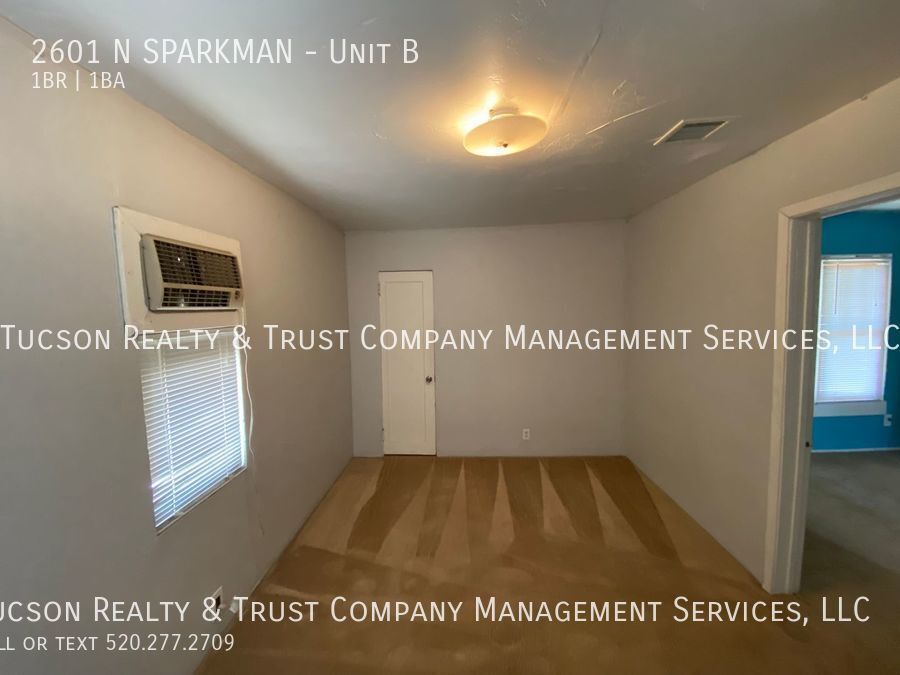 Located near Grant and Country Club, close to shopping, entertainment and bus-lines, is a charming 1 bedroom 1 bath duplex with a large fenced yard. The kitchen is equipped with stove, refrigerator and a ceiling fan. Also included is a new mini - split. Plenty of driveway parking and Tenant pays for electric -gas and $40 per month for water-sewer-trash. Pets are allowed with restrictions. All information deemed reliable but not guaranteed. Please contact our office to confirm pricing, availability and details at . Tucson Realty & Trust Co. Management Services, L.L.C. complies fully with all federal, state and local Fair Housing laws. Close To All Major Amentities Close To Bus Lines Large Backyard Pets With Approval And Restrictions