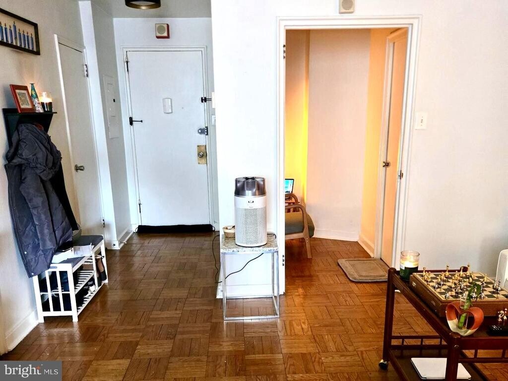 FULLY FURNISHED :: EVERYTHING INCLUDED — just bring your suitcase. Experience elevated Art Deco living at 2601 Parkway in this rarely available, front-facing 1-bedroom residence offering unmatched, direct views of the Center City skyline, Benjamin Franklin Parkway, Philadelphia Museum of Art, Fairmount Park, and Boathouse Row. Fully furnished and located in one of the building’s most desirable floor plans, this beautifully updated home blends historic Art Deco character with modern designer finishes. Step into a welcoming tiled foyer with a large coat closet, leading into an expansive living/dining area featuring restored original parquet floors, custom built-ins, a faux fireplace, and a stunning entertainment center designed to accommodate a large TV. Oversized windows fill the space with natural light. A convenient storage closet houses an in-unit stackable washer/dryer. The thoughtfully designed kitchen features a peninsula with seating, granite countertops, stainless steel appliances (refrigerator, dishwasher, range, microwave, and wine fridge), garbage disposal, and abundant cabinetry with glass-front accents—perfect for showcasing dishware and glassware. The oversized full bath is fully tiled with a walk-in shower with rain head and wand, glass enclosure, pedestal sink with medicine cabinet, linen closet, and power flush toilet. The spacious bedroom features Art Museum views and a walk-in closet, with private access to the bathroom. Rent includes: cooking gas, water, sewer, 24-hour concierge/security, on-site management and maintenance, WiFi-enabled Art Deco lobby, community room with children’s area, fitness center, bike storage, commercial laundry, package rooms with refrigeration, dry cleaning services, express shipment pickup, and a free shuttle to Center City. The building sits steps from Whole Foods, the Barnes, the Parkway museums, the Free Library, CVS, banks, cafés, and neighborhood dining. Three Septa bus routes are within one block. Easy permit street parking surrounds the building ($35/year) and garage parking is available for rent or purchase when offered. A beautifully updated, fully furnished home in one of Philadelphia’s most iconic Art Deco buildings—available January 1. Unit is offered furnished only.