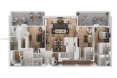 Sky Residence B follows a traditional split plan with an expanded living area featuring a formal dining space, a spacious central terrace, and a private terrace off the secondary suite. Designed to preserve the scale and feel of a single-family home, it offers the comfort and livability of a house within a luxury high-rise. The kitchen showcases ITALKRAFT® Italian cabinetry, quartz countertops, and WOLF® and SUB-ZERO® appliances. The primary suite includes a large vanity and direct access to the central terrace for seamless indoor-outdoor living. A full laundry room with front-load washer and dryer and a dedicated pantry add everyday practicality and elegance.