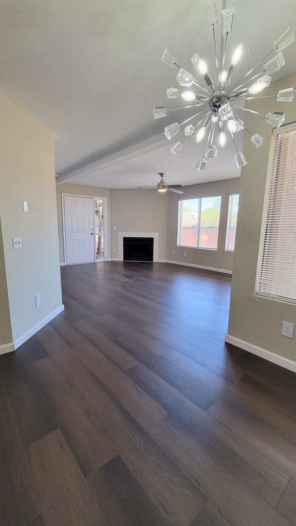 Welcome to a bright and well-maintained downstairs 2-bedrooms,1-bath residence located within a community setting. This home offers a comfortable and functional living space with abundant natural light,vinyl flooring throughout,and a spacious living room ideal for both everyday living and entertaining.The living room features a sliding glass door that opens directly to the private patio,enhancing natural light and creating a seamless indoor-outdoor flow--perfect for enjoying morning coffee or relaxing evenings.The well-equipped kitchen includes a stove,oven,dishwasher,and refrigerator,providing convenience for daily use. A washer and dryer combo is discreetly located behind a dedicated door,maintaining a clean and organized appearance when not in use.Additional features include a cozy tiled fireplace,a ceiling fan for year-round comfort,and a covered parking space. Residents also enjoy access to a community pool and benefit from a convenient location near restaurants,shopping,and schools,all within a thoughtfully designed community. We welcome all furry friends of any size!