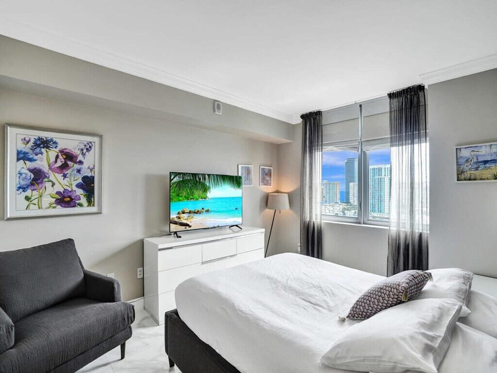 Welcome to your ideal short-term rental, where you can enjoy flexible booking options, whether days, weeks, or months. / Please note that the advertised price is for the low season; prices may vary based on listing terms and booking dates./ We are introducing you to a luxurious South Florida getaway at our condo in the VIP tower of Beachwalk Resort! Step into our recently freshly repainted unit, nestled in the upscale neighbourhood of Hallandale, just a stone's throw away from HYDE Beach, Aventura Mall, and the vibrant restaurants of Sunny Isles Beach. Your perfect stay awaits!