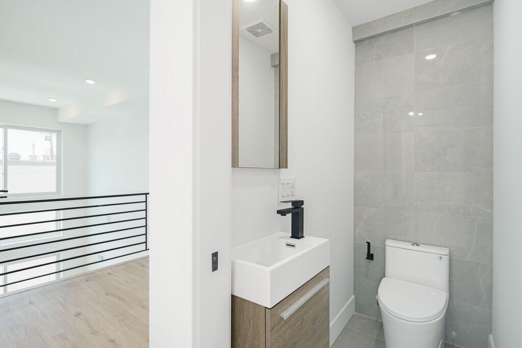 Welcome to Hagert Street Estates, Fishtown’s newest luxury townhome development. This stunning 3-bedroom, 2.5-bath bi-level townhome blends modern design with high-end finishes and thoughtful details throughout. The upper level features soaring 16-foot ceilings that flood the main living space with natural light, creating an airy, expansive feel. A floating staircase makes a striking first impression upon entry, while the sleek kitchen is outfitted with Samsung stainless steel appliances. Just off the main living area is a secondary living space that overlooks the first floor, perfect for a home office, lounge, or flex space. Enjoy private outdoor space including an expansive private roof deck with unobstructed skyline views. Additional highlights include optional gated parking and bespoke finishes throughout. Ideally located within walking distance to Fishtown’s most popular cafés, restaurants, and shops, with easy access to I-95, I-676, and Philadelphia International Airport. ONLY FIRST MONTH + SECURITY TO MOVE IN! Offer expires soon. Optional gated parking ($250/month if interested) Tenant responsible for electric and a $30 flat water fee per person. Contact us today to schedule your private tour.
