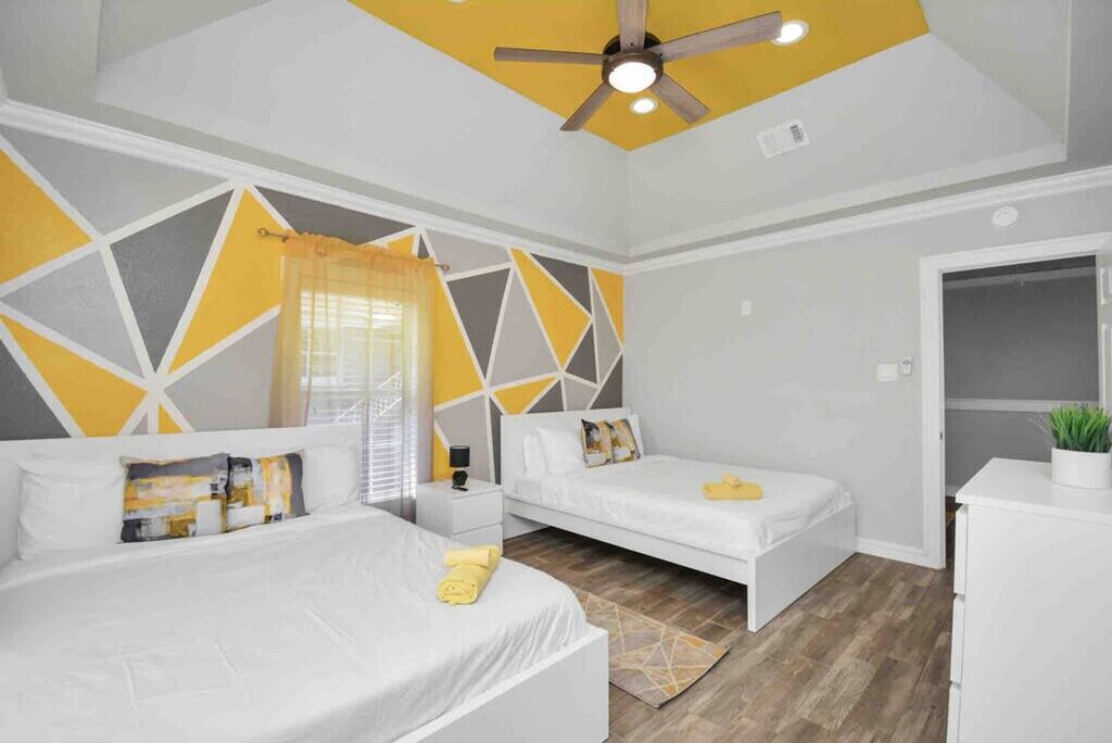 Experience a stylish getaway and feel at home in this newly renovated 2-story apartment. Located less than 10 minutes from Downtown and 15 minutes from Houston's top attractions, this 3-bedroom, 2-bathroom apartment combines design, luxury, and comfort. Each room features a unique design, enhanced by smart technology. The apartment features central AC and heating, an in-unit washer and dryer, complimentary toiletries, and curated wall art. Entertainment is provided by Ultra HD Smart TVs in all bedrooms and the living room. The fully stocked kitchen is equipped for all your cooking needs, and a dining area is available for family meals. Enjoy a private deck and guaranteed gated parking. Rental cars and personal chefs are available for an additional fee. Early bird check-in (if available) is $100 for 12 pm and $75 for 2 pm. Late checkout at 12 pm (if available) is $100. An air mattress is available upon request. Located in the flourishing Greater Third Ward area of Houston, this apartment is close to all major attractions, including Downtown, the Medical Center, Galleria Mall, Montrose, Midtown, the University of Houston, Turkey Leg Hut, and the Texans/Rockets stadium, all within minutes. Nearby attractions include Hobby Airport (18 mins), Bush Airport (22 mins), Texas Medical Center/MD Cancer Center (10 mins), Galleria Mall (12 mins), Houston Zoo (8 mins), Space Center Houston (43.1 km driving), Houston Museum District (0.4 km driving, 0.6 km or 8 mins walking), Buffalo Bayou Park (8.6 km driving), and The Menil Collection (4.1 km driving). There are 3 Ring camera devices located on the outside perimeter of the home; they will be recording 24/7 during your stay. No events are allowed unless approved by the host, and your reservation will be subject to cancellation without refund if house rules are broken. No extra guests are allowed to stay without approval from the host. We offer third-party vendors, including but not limited to chefs, photographers/videographers, teeth whitening, iPhone repair, masseuse/body contouring services and more. [SI]