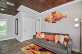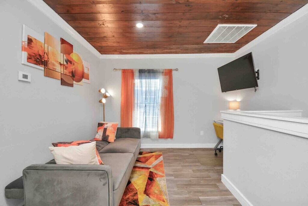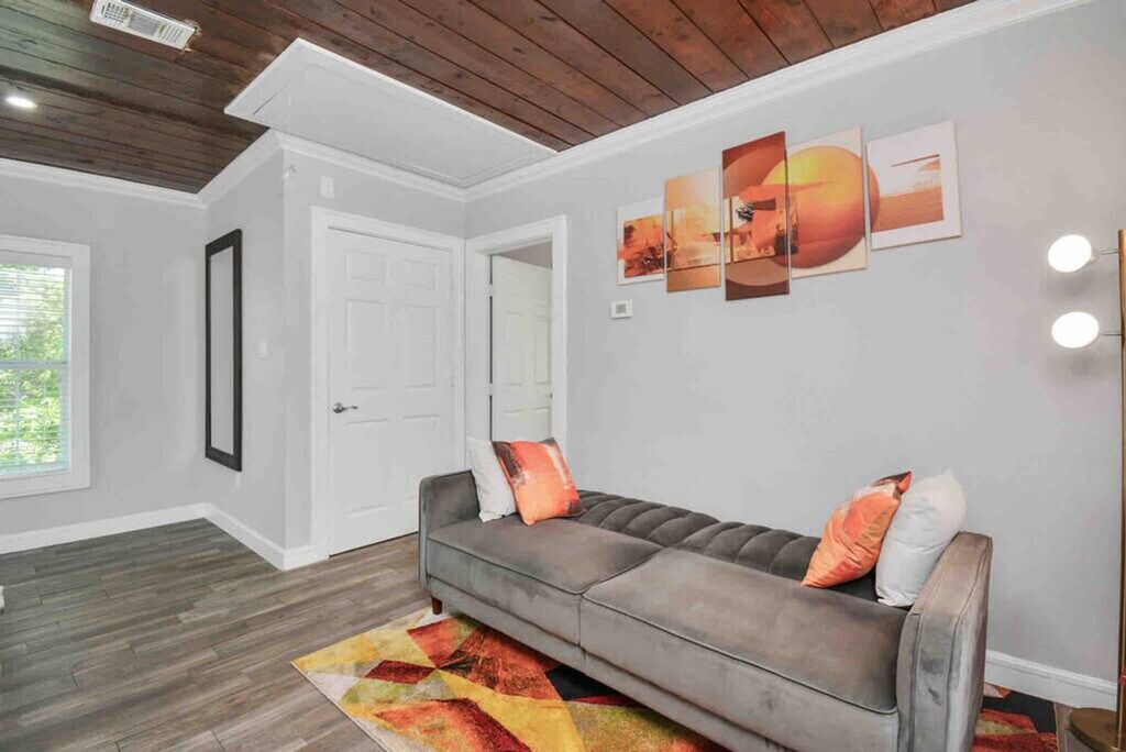 Experience luxury and feel at home in this newly renovated 2-bedroom, 2-bath townhome located on the 2nd level of a private duplex in Houston. This apartment features a private shaded deck and an open-concept design. This stylish apartment features an open-concept living area with an oversized sectional couch, custom decor, and curated wall art. The fully stocked kitchen includes utensils, bowls, plates, pans, stainless steel appliances, a kitchen island with bar stool seating, a Keurig coffee maker, and a toaster. Enjoy blazing fast Wi-Fi, Ultra HD Smart TVs, and an in-unit washer and dryer for your convenience. One private gated parking spot is guaranteed, with additional free street parking available. Private rental car, chef, masseuse, photography, and body contouring services are available as needed. Centrally located in the heart of Houston's Greater Third Ward, this apartment is minutes away from top attractions such as Hobby Airport, Bush Airport, Texas Medical Center/MD Cancer Center, Downtown, Galleria Mall, UH University, Montrose, Turkey Leg Hut, George R. Brown Convention Center, Houston Zoo, NRG Stadium, Toyota Center, and Minute Maid Park. Events are welcomed with host approval and will require a deposit. There are 3 Ring camera devices located on the outside perimeter of the home and they will be recording 24/7 during your stay. No extra guests are allowed to stay without approval from the host. Your reservation will be subjected to cancellation without refund if house rules are broken. No smoking is allowed inside the home. [SI]