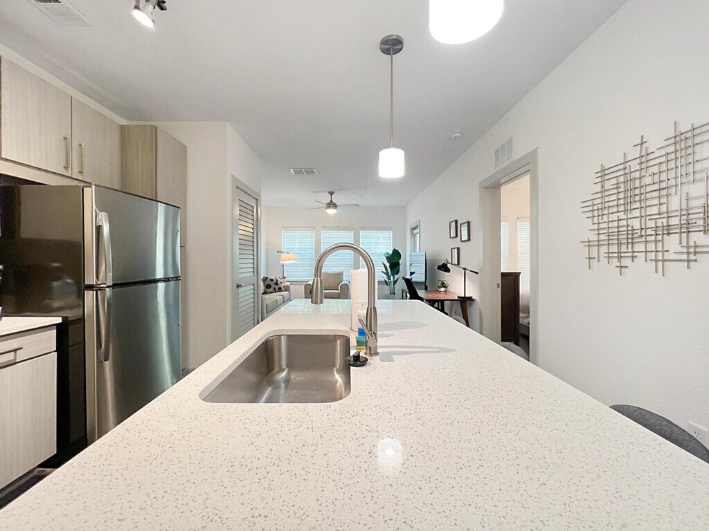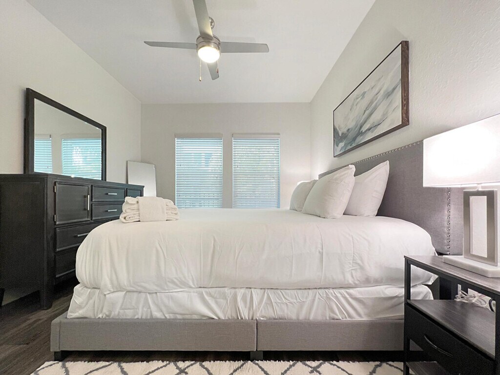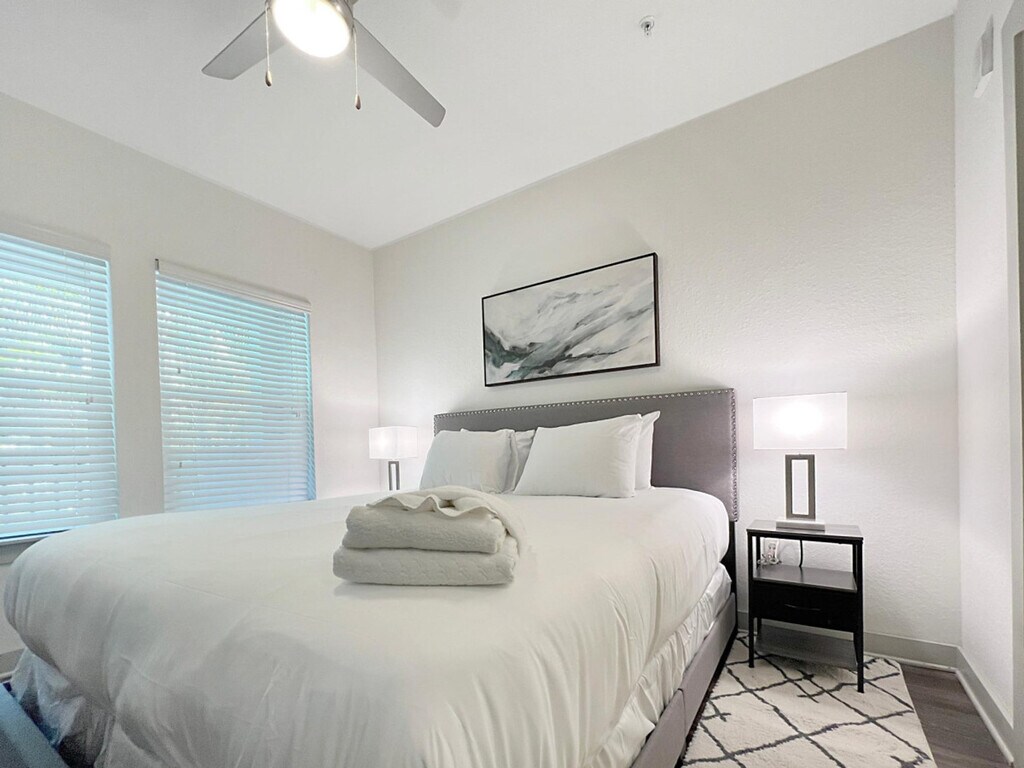 Luxury awaits in this Westshore Tampa apartment, just 5 minutes from Tampa International Airport and International Plaza, and 10 minutes to South Tampa and Downtown. This comfortably appointed 1-bedroom, 1-bathroom furnished apartment home includes all necessary housewares, linens, entertainment, and utilities. Situated on the 2nd floor, it offers a secluded courtyard view and is a short walk to gated parking. The apartment features laminate plank flooring throughout with upgraded finishes. Feel at home with amenities such as free Starbucks signature coffee drinks in the lobby, large resort-style saltwater swimming pools, and a full-size fitness center. The apartment is equipped with high-speed Wi-Fi, live cable TV, and streaming apps, and includes a full washer and dryer in the unit. Pet-friendly with a pet spa, cats and dogs are allowed with restrictions. There is a $300 one-time fee per pet with a 2-pet limit. Gated controlled-access parking is available. Conveniently located close to parks, shopping, and great restaurants, this apartment offers easy access to everything you need. Check-in is between 4:00 PM and 8:00 PM, with notification required 24 hours in advance for arrivals after 6 PM. Background screening is required for every adult aged 18 and over, and must be completed 48 hours prior to check-in. Smoking of any kind, including vaping, is not allowed within the rental or within 20 feet of the building, with a $1,500 charge for violations. Maintenance follows a service route each day and technicians will not enter the property if there is a loose dog. [SI]