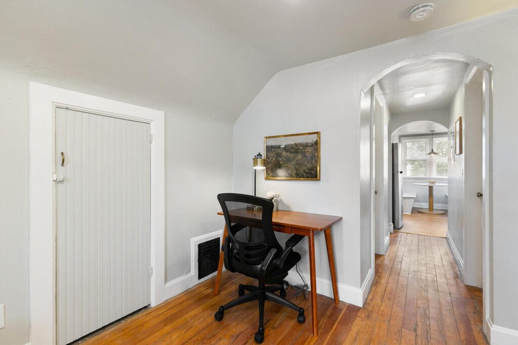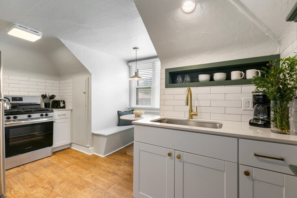 Welcome to your charming 700 sqft 1-bedroom retreat on a popular, yet peaceful, tree-lined street in the heart of Congress Park. This top floor unit boasts refinished hardwood floors, a renovated kitchen and bath, and a cozy built-in breakfast nook perfect for morning coffee. Experience the perfect blend of historic charm and modern convenience in this beautifully updated unit. Whether you’re here for work or relaxation, you’ll feel right at home. Newly renovated with designer touches, this apartment features a stocked kitchen ready for your culinary adventures. Enjoy the safe and quiet neighborhood nestled next to the park, and take advantage of the smart TV for your streaming needs. Free communal laundry facilities are available for your convenience. Free street parking is available on the immediate block or nearby. We are dog friendly, but have a strict no cats policy. Pet rent is $90 per dog per month. Located just 3 blocks from Congress Park, 5 blocks from City Park, and 6 blocks from Cheesman Park and Botanic Gardens, this apartment is a park lover's paradise. With dozens of cool coffee shops and restaurants within a 5-block walking distance, and Congress Park Market for groceries and sandwiches across the street, you'll have everything you need nearby. It's only 8 minutes to Cherry Creek Shopping District, 10 minutes to downtown Denver, RiNo, and LoHi, and 30 minutes to Red Rocks. Nearby hospitals include St. Joseph, Presbyterian St. Luke’s, and Rose, all within 5 minutes, and UC Health University of CO and Children’s Hospital CO within 15 minutes. Shared, free laundry is in the basement, which is accessed from a staircase down from the unit. The host controls central heat from a single thermostat for the building, while guests control window AC units and ceiling and tower fans. A lease agreement is required to be e-signed with all guests upon booking to confirm your stay. All utilities and internet are included, with fast internet at 300 Mbps download and 10 Mbps upload, ensuring a seamless remote work-friendly environment.