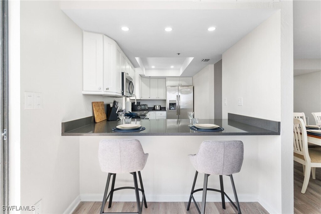 AVAILABLE 2026 SEASON! Welcome to Bay Harbor Club on Bonita Beach! Nestled along Florida’s breathtaking coastline,this stunning penthouse residence offers captivating ocean views,golden sunsets,and all the comforts of home. Located directly across from Bonita Beach Access #9,Bay Harbor Club is the perfect destination for a small family getaway or a couple’s retreat. Whether you’re escaping winter’s chill or embracing summer’s warmth,your beachside relaxation begins here. Step inside and be greeted by an inviting,open space filled with natural light. The bright living and dining areas flow seamlessly,with expansive bay and ocean views visible through sliding glass doors that lead to the spacious wrap-around balcony. This outdoor oasis,complete with a screened lanai,is ideal for savoring morning coffee,soaking in the scenery,or hosting a gathering. The fully equipped kitchen features granite countertops and modern appliances,including a large refrigerator,oven,microwave,and dishwasher. Whether preparing a casual snack or a gourmet meal,the kitchen has all the cookware,utensils,and tableware you’ll need. The dining area and breakfast bar offer plenty of space for enjoying meals or entertaining guests. The primary suite provides a serene retreat with a king-sized bed,ample storage,and an ensuite bathroom boasting a double vanity and walk-in shower. The second bedroom is designed for comfort with two twin beds and convenient access to a full bathroom located just down the hallway,which includes a combination shower and tub. An additional two guests can be accommodated in the pullout sofa in the living room. For added convenience,the residence also features an in-unit laundry area. This 2-bedroom,2-bath slice of tropical paradise combines modern comfort with timeless coastal charm. Reserve your stay today at Bay Harbor Club and make your Bonita Beach dreams a reality.