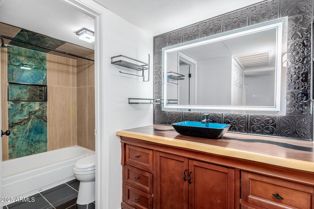 Enjoy resort-style living in this 2-bedroom,2-bathroom condo overlooking the sparkling pool in the heart of the desirable Biltmore/Arcadia area! This gated community offers top-notch amenities,including a pool,spa,and fitness center. Inside,you'll find a living room with cozy carpeting,blinds,chic light fixtures,and a soothing palette. The eat-in kitchen features wood-look tile flooring,wood cabinetry for maximum storage,a striking tile backsplash,and sleek SS appliances. The main bedroom offers a walk-in closet and a private bathroom for added comfort. The open layout and pool views create a comfortable retreat. Unbeatable location,just minutes from premier dining,shopping,and entertainment,with quick access to the SR-51,Loop 202,and Sky Harbor Airport. Don't miss it!