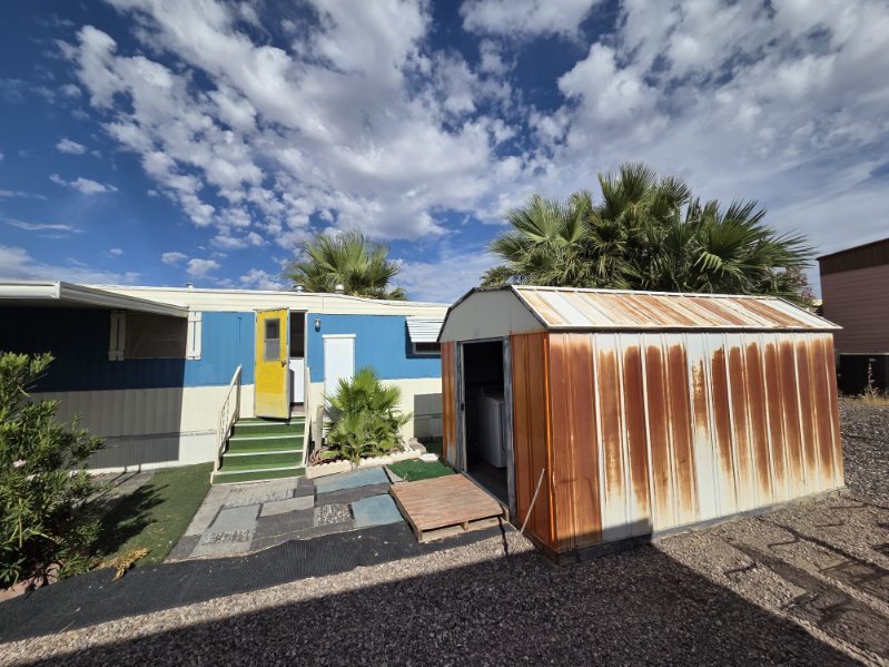 Like-New 2023 Clayton Home. #298 Discover this beautifully modern 2-bedroom, 2-bath remanufactured home, built in 2023 by Clayton and located in a peaceful area on the east side of Las Vegas. With a spacious open floor plan, elegant finishes, and a large master bedroom, this home offers comfort, style, and functionality all in one. Step outside to a shaded patio perfect for relaxing evenings, and enjoy the fresh, like-new condition throughout. The community itself is serene and well-maintained, offering a variety of resort-style amenities for your enjoyment, including: Clubhouse with pool table, darts, foosball, and air hockey Sparkling pool with outdoor lounge seating Inviting jacuzzi area for total relaxation This is more than just a home it's a lifestyle. Don't miss your chance to own this modern gem in one of Las Vegas's most desirable 55+ communities! Finance options are available with as little as 5% down, and all credit scores are welcomed. Call to schedule a tour today! Buyer inquiries are warmly welcomed. Not ready to buy but ready to rent? Look no further! This recently constructed beauty offers all the comforts you desire, including a dedicated laundry room, central air conditioning, and a comprehensive warranty for peace of mind if you buy, or on-site maintenance if you rent. :) Contact the sales agent for clarification or viewing arrangements. DL#5033