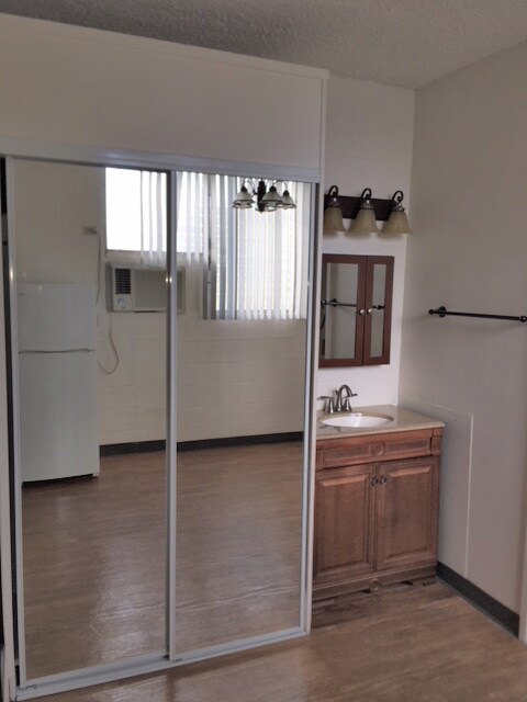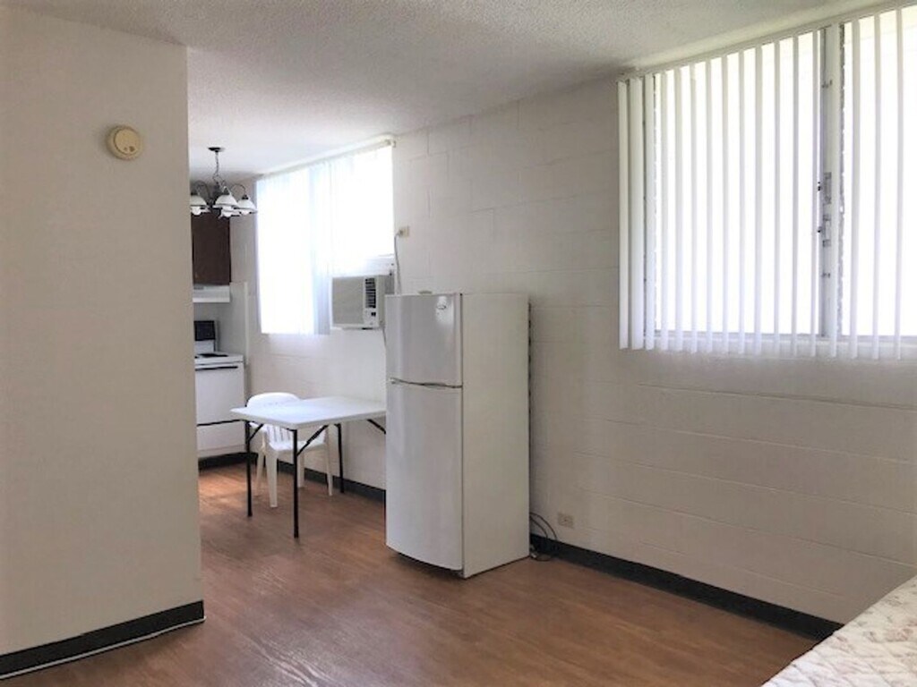 Ground floor studio in secured building. Laminate floors, updated kitchen counters and bathroom vanity. Coin-Op Laundry in building. Close to UH, freeway on/off ramp and stores. Sorry, no pets and no smoking. Avail now. For showings: contact Darcie Y. Kaneshiro, R (RB-17820) or .