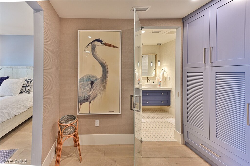 This light coastal two bedroom two bath Barefoot Beach Club direct beachfront condo offers it all: most desirable 5th floor location with wide & long beach views of sugar white sand & clear turquoise water of the Gulf of Mexico,beautiful sunsets from inside and on the large screened lanai,enjoy morning coffee while watching sunrises over the 100+ acre Barefoot Beach preserve land from the east facing outdoor terrace,convenient swimming pool just a short walk away right outside the building (a new improved pool is being constructed and is scheduled to be completed in 2025),plus new club w/fitness & 2nd pool,tastefully updated including kitchen which included new cabinets appliances countertops & fixtures,guest bath,flooring,crown moldings,electric shutters on the lanai,and turnkey furnishings. Barefoot Beach is Collier County’s premier gated Beach to Bay community featuring Royal Palm lined brick paver streets,2 security guards 24 hours,one of the highest ranked beaches in the country,no public parking within the community and simply an awesome place to rent. Barefoot Beach Club Condominium in Barefoot Beach is centrally located to dining,entertainment,golfing,arenas in Naples and Bonita Springs and is close RSW Airport,the Promenade,Coconut Point,Mercato & Waterside Shops and Old Naples.
