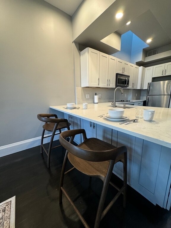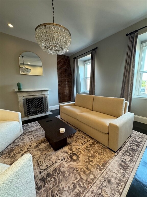 Front-facing 2 bedroom floor-through penthouse with 300 sqft private roof deck featuring sweeping City & Charles River views. Moments from Copley Sq. and the Esplanade,this 2020 renovation combines original Back Bay character including Carrara marble and exposed brick with modern luxury and elegance. All new kitchen,bathroom,recessed and chandelier lighting,central air,closets & restored flooring. Wonderful open layout can accommodate spacious living + dining and features a Marble (decorative) fireplace,huge windows,10ft ceilings and soaring skylights. The large kitchen features quartz counter,backsplash & breakfast bar,custom cabinets,abundant storage & Bosch appliances. The chic bathroom with marble accents compliments the design. Two bright bedrooms feature built-in closets. In-unit spiral stairs lead to the private roof deck for unobstructed views. Brand new Restoration Hardware furnishings including a queen bed,dresser,counter stools,chairs,and a queen sleeper sofa. MLS# 73416705