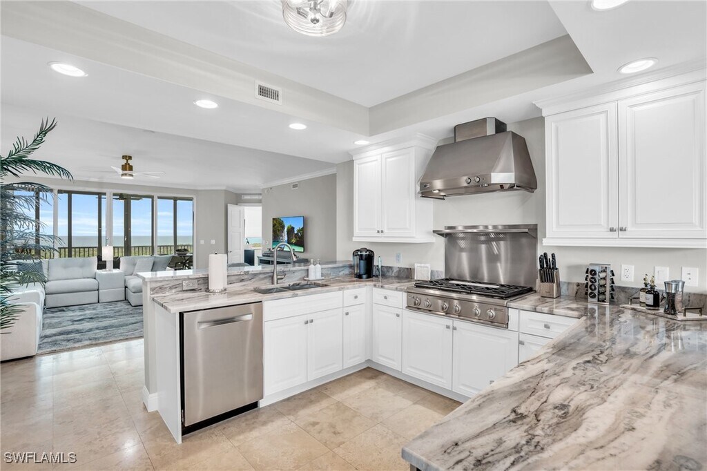 Discover elevated coastal living at 265 Indies Way,Unit #1404—a stunning sky residence where refined luxury,peaceful privacy,and sweeping Gulf-to-golf views come together in the most exclusive tower of The Dunes: Grande Geneva. Tucked away at the quiet edge of the community and surrounded by sparkling waterways and lush preserves,Grande Geneva offers unmatched seclusion within this prestigious Naples enclave. A private elevator opens directly into your home,immediately setting a tone of sophistication and exclusivity. This beautifully reimagined 3-bedroom,3-bath sanctuary features polished marble flooring throughout the main living areas,blending timeless elegance with modern coastal design. It includes two assigned garage spaces and a rare transferable membership to The Floridian Club,an exclusive private beach club with daily shuttle service,full beachside food and beverage service,and effortless access to Naples’ pristine white sands. Residents of Grande Geneva enjoy resort-style amenities including a heated pool and spa,a state-of-the-art fitness center,a stylish social lounge with catering kitchen,and outdoor grilling areas. From the moment you enter,you are greeted with panoramic Gulf and golf course views. The kitchen,living room,screened lanai,and primary suite showcase unforgettable sunsets over the Gulf,while the secondary bedrooms enjoy serene morning light and lush fairway vistas. The open layout is designed for elevated coastal living,with soaring ceilings,abundant natural light,and seamless flow throughout. The chef’s kitchen is beautifully appointed with premium appliances,granite countertops,a wine cooler,and custom cabinetry. The living area opens to a screened lanai where Gulf breezes and glowing sunsets create the ideal setting for relaxation. The primary suite offers a private retreat with lanai access,a spa-inspired bath,an expansive walk-in closet,and a wall-mounted TV. The second bedroom features ensuite privacy with its own TV,while the third enjoys peaceful golf course views and access to a nearby full guest bath. All bedrooms include high-quality bamboo bedding. Life at The Dunes is exceptional. Residents enjoy access to the award-winning Club at the Dunes,recognized by BoardRoom Magazine and Forbes Travel Guide. Amenities include a cascading waterfall resort pool,zero-entry design,a vibrant tiki bar with poolside service,and a world-class restaurant led by an award-winning chef. Evenings end around the fire pit,while guests enjoy the convenience of six luxury on-site cottages.