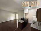 This move-in ready, 1-bedroom, 1-bathroom apartment is located in a gated complex with high-security cameras for added safety. The second-level unit features an open floor plan with modern laminate flooring throughout. Please note: the photos shown are not of the specific unit but are of a similar floor plan with comparable finishes and layout. The kitchen is equipped with upgraded appliances, including a stove and refrigerator, accented by sleek white countertops. The upgraded bathroom includes a stylish shower, and the spacious walk-in closet provides plenty of storage. Additional perks include onsite laundry and open parking for your convenience. Don't miss out on this beautiful, well-maintained home—schedule a tour today! Sin City Real Estate and Management LLC B.1003001.LLC Move in fees: First Months Rent Security deposit Pet Rent