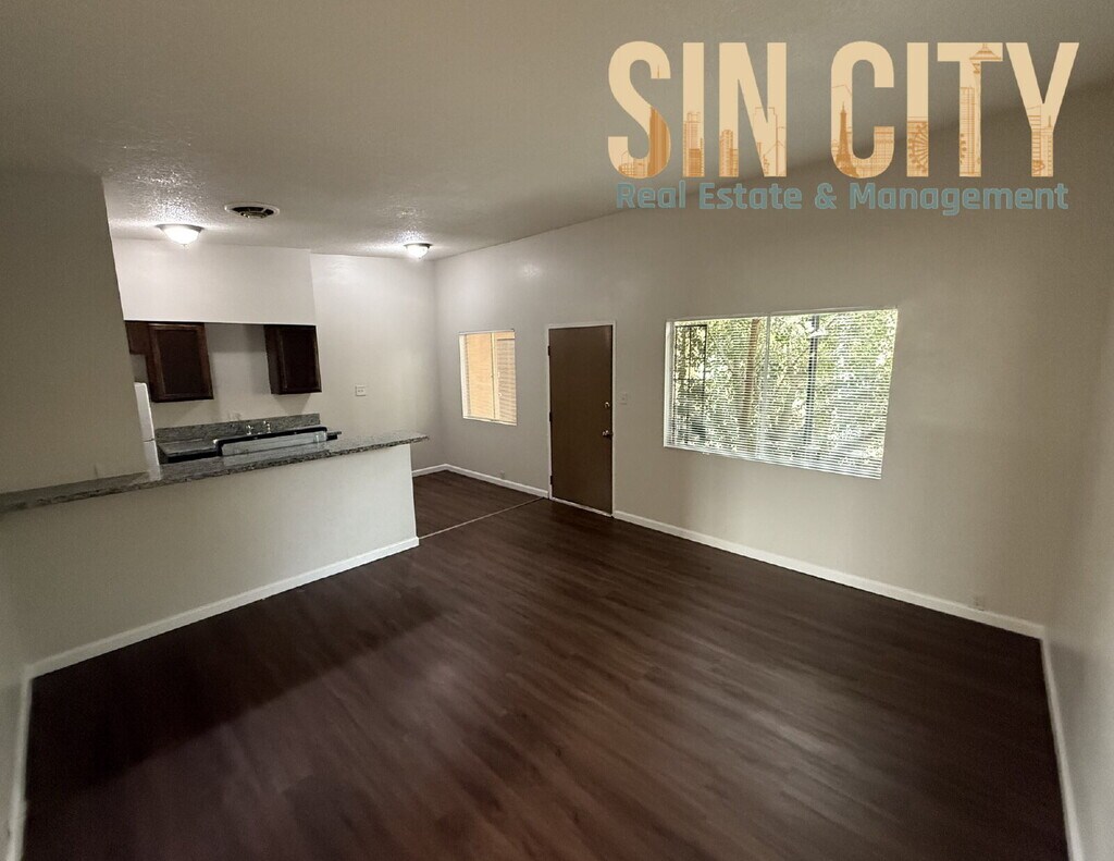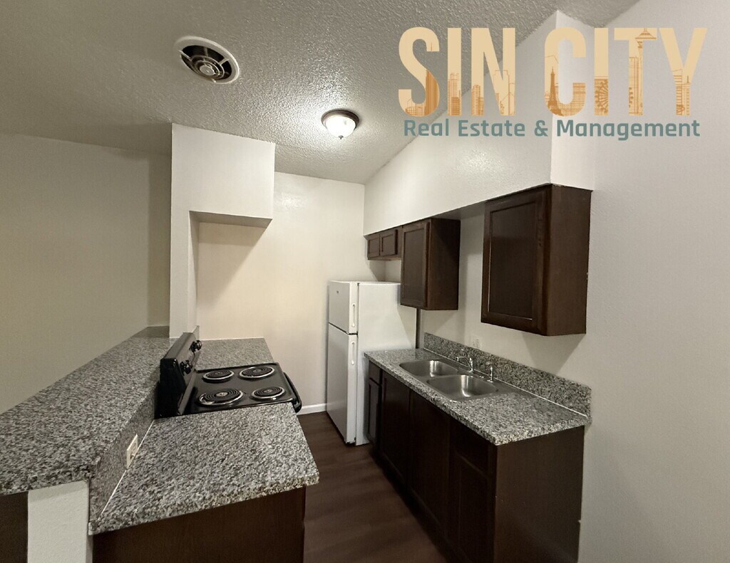 Move-in ready! This recently painted, clean 1-bedroom, 1-bathroom apartment is located in a gated complex with high-security cameras for added safety. The lower-level unit has an open floor plan, creating a spacious and inviting living space. The kitchen features upgraded appliances, including a stove and refrigerator, along with granite countertops for a modern touch. Additional perks include onsite laundry and open parking for your convenience. Don’t miss out on this beautiful, well-maintained home—schedule a tour today! Fees include: First Month's Rent Security Deposit Pet Deposit Sin City Real Estate and Management LLC B.1003001.LLC