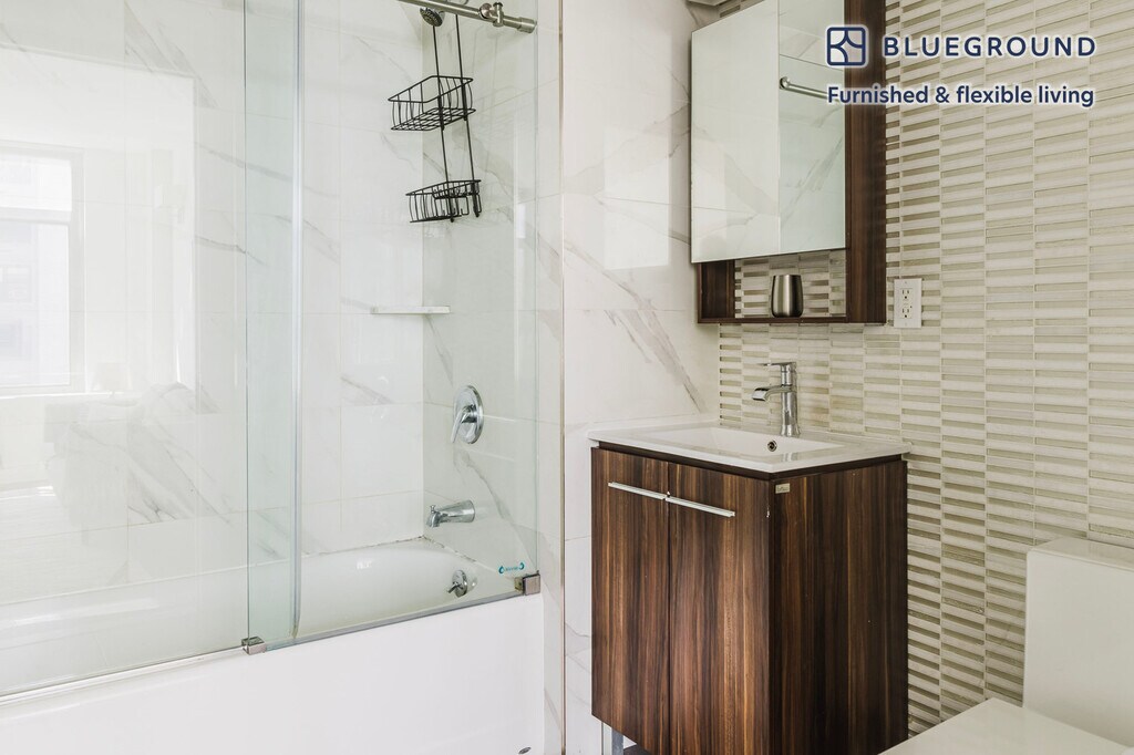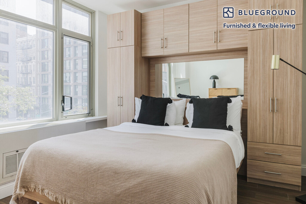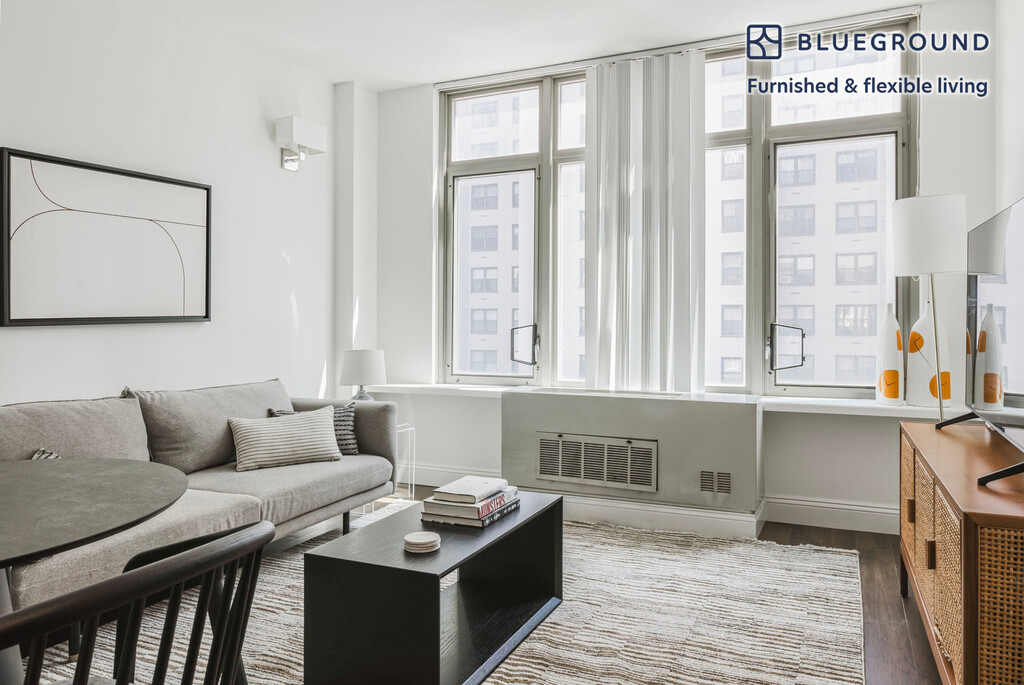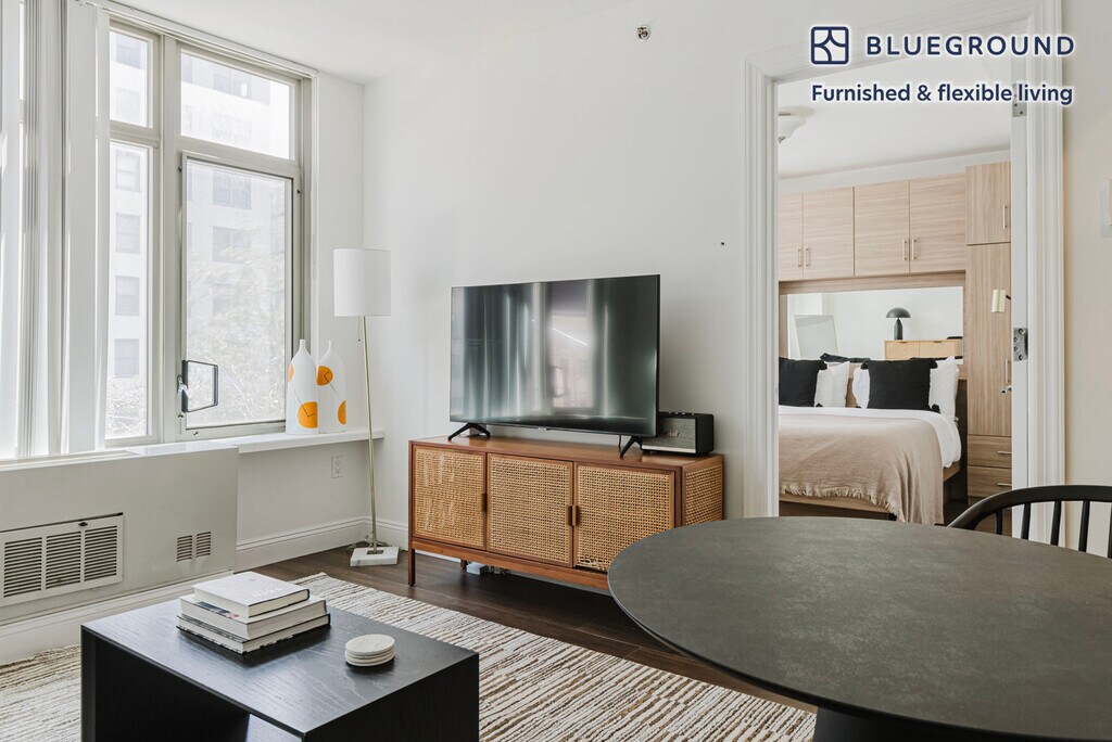Feel at home wherever you choose to live with Blueground. You’ll love this stylish Gramercy Park furnished one bedroom apartment with its modern decor, fully equipped kitchen, and lovely living room. Ideally located, you’re close to all the best that New York has to offer! (ID #NYC1549) The advertised rate of $4,240/month is the lowest available price, based on a 6 month(s) and 4 day(s) stay with a move-in date of August 6, 2026. If you’re looking for a 1-year stay, the rate is $4,460/month. Rates vary depending on the duration of stay, season, and other parameters. For exact pricing and additional pricing components, please visit our website and enter your desired move-in and move-out dates. The rate is applicable when billed upfront; it can be higher if billed in multiple payments. Brokers are welcome to reach out. Were you looking for an unfurnished lease? Try Blueground instead and upgrade from unfurnished to furnished living: - Furnished at rates comparable to unfurnished - No setup or furniture costs - save thousands - Move-in ready - save time, just bring your suitcase Designed with you in mind As with any Blueground apartment, you’ll find a thoughtfully designed space complete with beautiful furniture and a fully equipped kitchen in this one bedroom property. And, thanks to our superior quality mattresses, luxury linens, and towels, you can relax knowing you’ll always feel comfortably at home. When you’re ready for some fun, you can take in the New York vibes or bring the entertainment to you with the premium wireless speaker or smart TV. Sleeping arrangements Queen Bed, 63in/160cm Amenities Building amenities unique to this one bedroom apartment include an on-site: - Dryer in building - Elevator - Washing machine in building Arrival and ongoing support The entire apartment is yours to enjoy! Throughout your stay, you’ll have access to our Client Experience team through the Blueground App. You can schedule additional cleanings, submit maintenance requests, and view our neighborhood recommendations with just a few taps. We’ll share all details upon confirmation of your stay. Ideally Located This furnished apartment is located in Gramercy Park, in central Manhattan and takes its name from a quaint, fenced-in private park. Home to the Roosevelts back in the 1800s, as well as many politicians and artists, the area was designed to house fashionable families. Today, it attracts young families and students who seek an inviting place to call home. On weekends, the benches and beautiful trees make the surrounding area of Gramercy Park the ideal place to jog or relax. Its central location makes it easy to get downtown or easily commute uptown for work. Second and Third Avenue offer a great variety of fine dining and bars, ideal for weekday socializing. Union Square, just a few steps away, is a bustling shopping and transportation hub. Grand Central station is only an 18-minute subway ride away. Other things to note This Blueground apartment has flexible lease options, allowing you to book it for one month, a year, or more. Brokes CYOF. We take great pride in ensuring every photo displayed is shot in our own units with our actual furnishings. That said, we regularly refresh our decor and furniture arrangement, which may differ from what’s pictured.