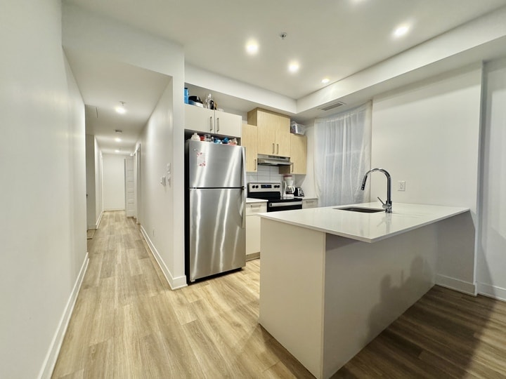 - Additional Property Details- Brand New 2-Bed, 2-Bath Condo with Free Internet and an Office Den in Mercier/Hochelaga-Maisonneuve This stunning new condo with appliances included is located in the heart of Hochelaga, Montreal, directly across from the Pie-IX metro station. As part of an exciting redevelopment project at 2693 Boulevard Pie-IX, this building offers 22 luxurious, modern units with 4 floors of living space above ground. Experience top-tier finishes, modern amenities, and a premium lifestyle in a convenient, vibrant neighborhood. Unit Features: Free high-speed Wi-Fi included Separate Office Den, ideal for working from home Fully equipped kitchen with Fridge, Stove, Dishwasher, Washer, and Dryer, Air Conditioning Energy-efficient LED lighting fixtures throughout Hot water included Building Features: Modern, brand-new condo with sleek, contemporary finishes, convenient elevator for easy access to all floors Additional Information: No pets allowed 1553.6 sq ft Smoking is not allowed Tenant insurance is required Credit check is required