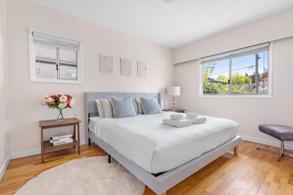 Discover this bright and thoughtfully designed 2-bedroom suite in Vancouver’s sought-after West Side and feel at home. The lower-level space offers a warm and welcoming atmosphere. This suite features a compact dining area, a kitchenette for light cooking, fresh linens, towels, and basic essentials. The kitchenette includes a cooktop, fridge, and microwave. The backyard and laundry area are shared between the upper and lower units. Located in Vancouver’s prestigious Arbutus Ridge neighborhood, this home offers a peaceful, family-friendly setting with tree-lined streets and beautiful parks. You'll be close to top schools, shops, and restaurants along Arbutus Street and King Edward Avenue. Enjoy easy access to downtown Vancouver, Kitsilano Beach, and the University of British Columbia. The area is perfect for relaxing strolls, biking, and exploring the best of the city while enjoying a quiet, upscale community. Downtown Vancouver is an 11-minute drive, and YVR Airport is a 14-minute drive. Grocery stores and pharmacies are a 2 to 5-minute drive, as are the restaurants and entertainment on Main Street. Bus routes and transit are a 2-minute drive. Entrances are private, though guests may occasionally cross paths with those staying upstairs. No smoking is allowed within the home. [SI]