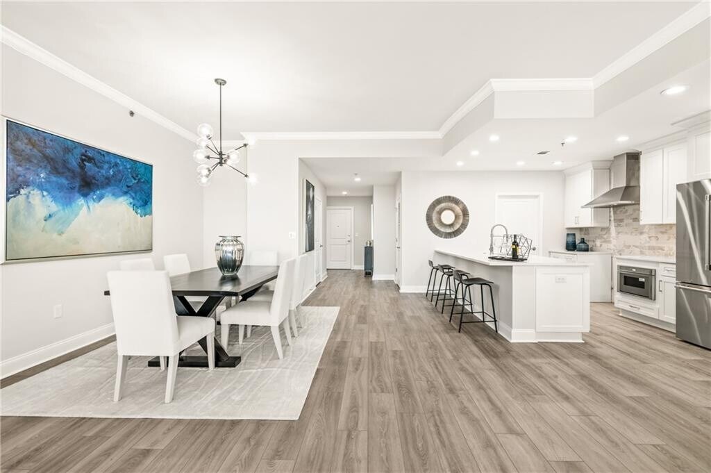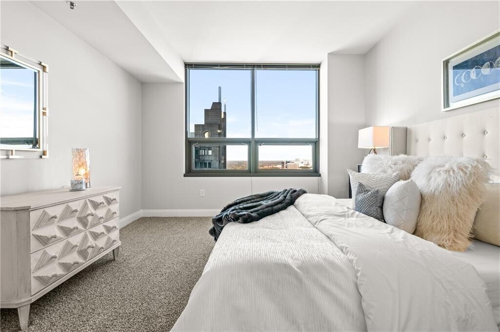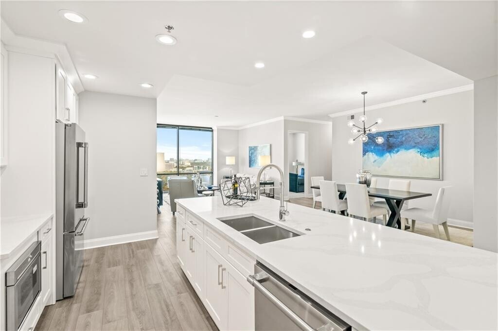Remarkable find in a coveted community located within sought-after Midtown. The Atlantic takes luxury living to the next level with five-star amenities including resort-style pool,fitness center,yoga studio,media room,game room,whirlpool,24-hour concierge,and more! The exquisite living experience doesn’t stop there! This fully renovated,nearly 2200 sq ft home,is surrounded by oversized windows,soaring 10ft high ceilings,and flooded with natural light. As one of The Atlantic’s largest floorplans,boasting 3 bedrooms and 3 baths,this unit has been designed to maximize its large space. The oversized primary suite includes a soaking tub,glass shower,double vanities,an enormous walk-in closet,as well as plenty of additional storage. Beautifully merging sophistication with modern functionality,the open-concept living and dining area has new hardwood flooring and is perfect for entertaining. New chic finishes throughout the kitchen include brand new Italian stainless steel appliances and an upgraded backsplash. Luxurious brand-new white shaker cabinets and new Quartz countertops can be found throughout the kitchen and bathrooms. As well as brand new,top-of-the-line carpeting in the bedrooms. Restore and relax on your balcony with views as far as the Appalachian Mountains and elevate your luxury living at The Atlantic!