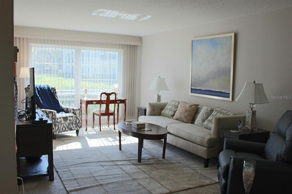 Nicely Furnished Rental available starting 4/1/26 thru 11/30/26. Ground floor condo,2BR,1.5 Bath "Delightful Dunedin" rental,waterfront complex across from Pinellas Trail - overlooks grassy lawn area. PERFECT FOR HOUSE-HUNTERS. No smoking/no pet unit. Carpet/tile floors,tastefully decorated throughout. Formal dining area; Living room extended into porch area. Semi-private laundry only steps away at end of bldg. entry hall. Full amenity beachfront complex with heated pool,tennis,fitness cent,bocci,clubhouse private beach/park and more! Walk to stores,restaurants & golf course! No pets,no smoking. Price quoted for 7 month; - includes water/trash/cable WiFi; does not include booking/cleaning fees of $295. NOTE: all furnished rentals have an "owners closet/storage" with no tenant access; LMR required MLS# TB8477166