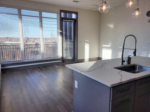 This beautiful condo unit has fantastic views and an abundance of natural light! This corner unit is situated on the top floor with open living space with 10’ tall ceilings. Dual sink in the bathrooms, walk in closets, and ceiling fans in every rooms. Lots of storage room around the unit and in the kitchen. The kitchen features breakfast bar, quartz counters, engineers wood floors. The 4-story building offers 5 elevators, secure entry to building & units, fitness & yoga rooms, lounge areas, game room, kitchen & bar and business center. Enjoy access to the pool, bike storage, dog park, dog station and jogging and biking trails that lead to Nob Hill Greenbelt. Great Carrollton location close to H-mart shopping center, 99 Ranch market, Walmart and Lowe's. Convenient access to I-35, TX-121 and George Bush Turnpike. Close commute to downtown and both airports.