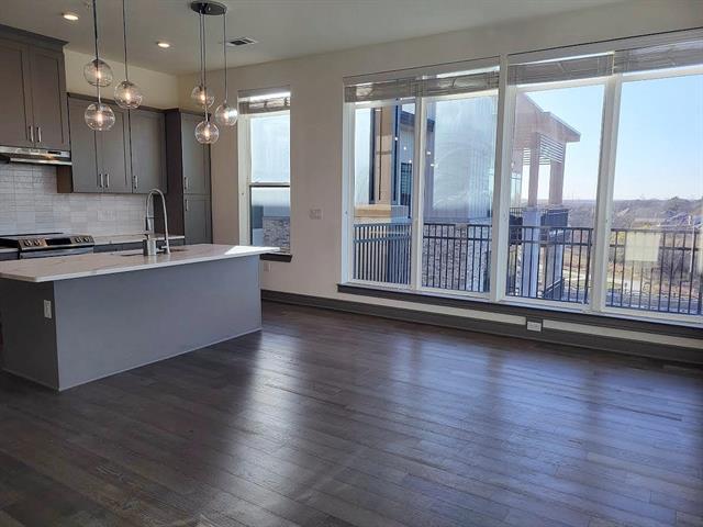 2bed room and 2 bath room condo is located on 3rd floor and a beautiful creek view side with walking trail. This condominium was completed their construction in 2023. It has 5 elevators up to 4th floor. It is modern and clean. This 4 story building has mail box room, secure entry, big conference room Gym and game room, kitchen and bar, access to pool and bike storage, jogging trails. It is easy to access from I-35 and George Bush highway and 121..