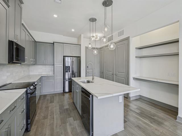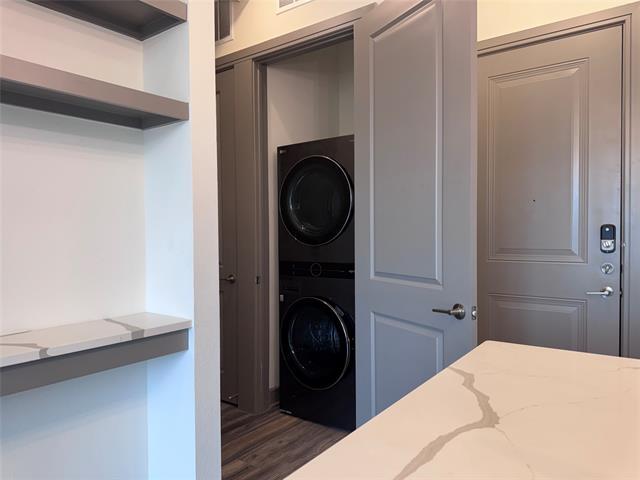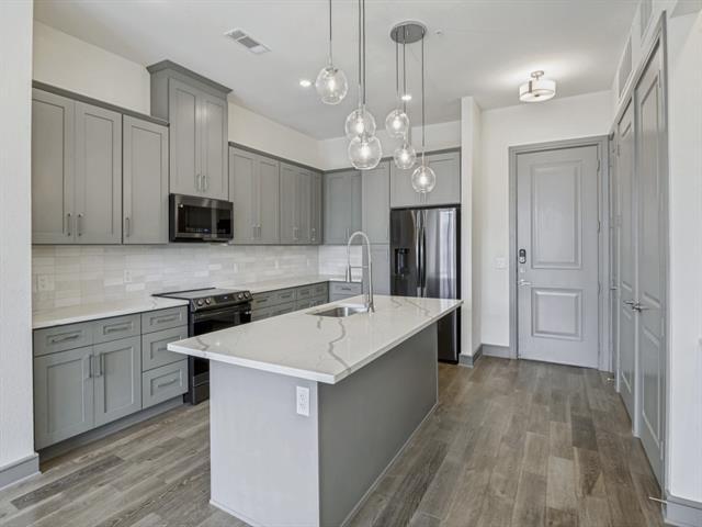Experience luxury living in this brand-new condo with a beautiful courtyard view and impressive 10' ceilings. The spacious one-bedroom unit boasts a walk-in closet with built-in shelves and abundant storage throughout. The stylish kitchen features a breakfast bar, quartz counters, and engineered wood floors. Brand new Refrigerator, washer and dryer is included. Owner pays for valet trash pick up services. Enjoy the convenience of 5 elevators, secure building access, fitness and yoga rooms, lounge areas, a game room, kitchen, and a business center. Additional amenities include a pool, bike storage, and a dog park, along with nearby jogging and biking trails leading to the Nob Hill Greenbelt. This Carrollton gem is close to shopping, major highways, downtown, and both airports. Ready for occupancy!