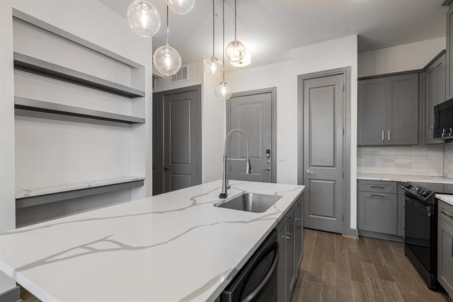 Well-maintained 4th-floor condo with open sky views and 10-foot ceilings. The bedroom features a walk-in closet with built-in shelving and generous storage throughout the home. The modern kitchen includes quartz countertops, a breakfast bar, and engineered wood floors. This secure building offers five elevators and impressive amenities including a fitness and yoga room, resident lounges, game room, kitchen and bar, and business center. Enjoy access to the pool, dog park, bike storage, and jogging and biking trails leading to Nob Hill Greenbelt. Ideally located in Carrollton near 99 Ranch Market, Walmart, Lowe’s, and major highways for quick access to downtown and airports. Refrigerator, washer, and dryer convey with the condo. Information herein deemed reliable but not guaranteed. Buyer or buyer’s agent to verify all measurements, schools, and property information.
