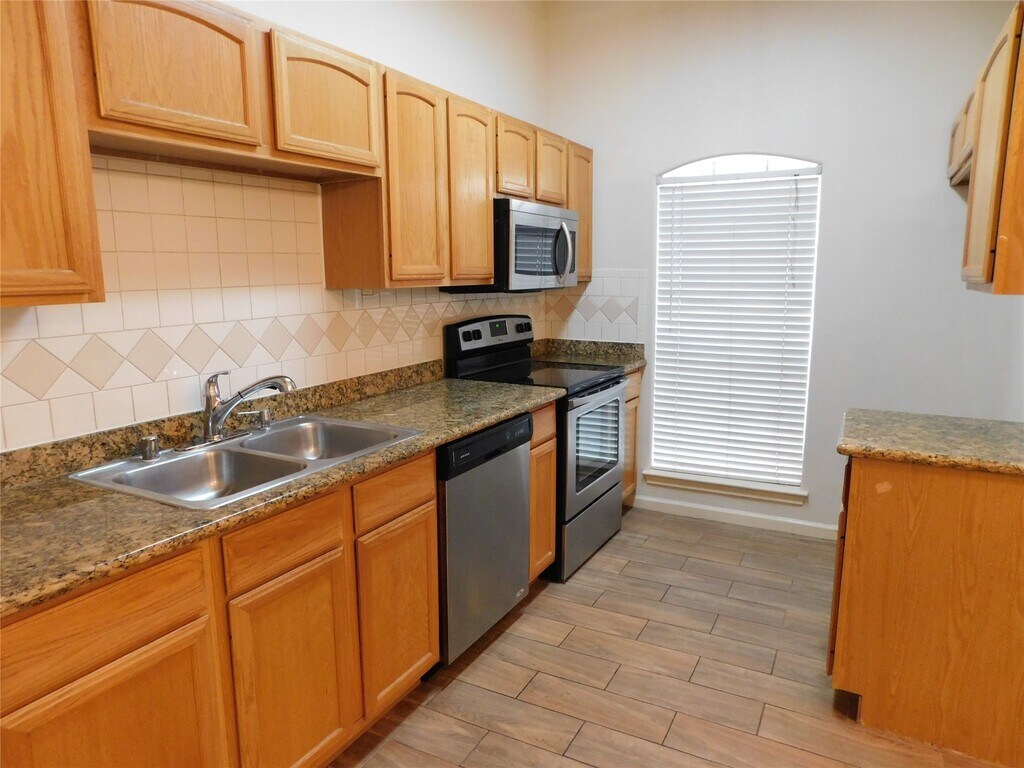 Lovely townhome has been fully updated; corner unit; 3 bedrooms 3 full baths,one bedroom down,primary bedroom and one bedroom upstairs. High ceiling in living room,tiled floors throughout downstairs; carpet on stairway and 2nd floor; granite kitchen countertops; upgraded whirlpool tub in master bath; washer,dryer and refrigerator all included plus one car detached garage; covered patio at front porch for relaxation; zoned to Ft. Bend all excellent schools; easy access to shopping,post office,library and freeway. This is a wonderful place to call home,must see! MLS# 15357426