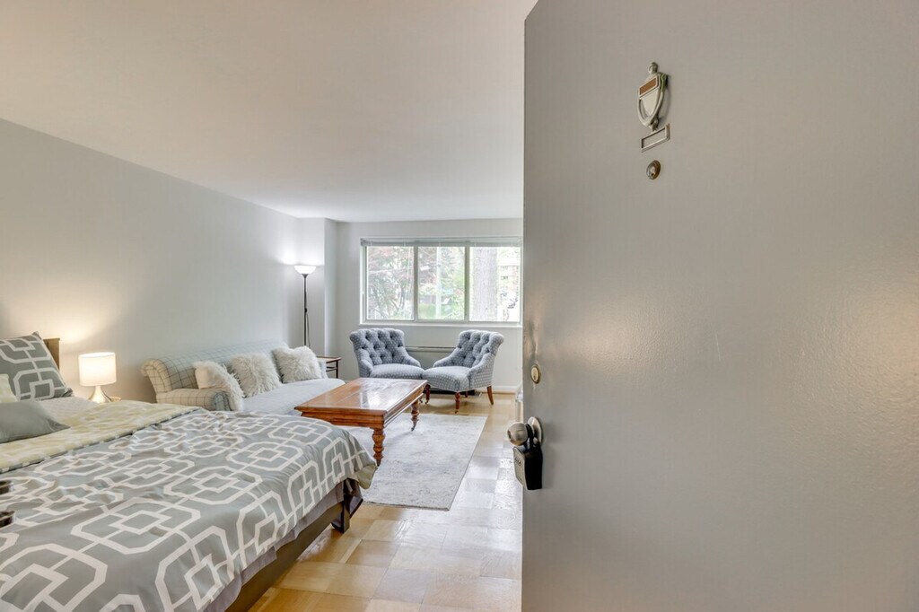 Find your footing in Washington, D.C., at this charming studio apartment on a peaceful street just off of Connecticut Avenue. Feel at home in this single-story studio with step-free entry via elevator. Big windows bring in natural light, and the kitchen has been updated with sleek finishes. Storage is no issue thanks to a walk-in closet and extras throughout. This apartment features a smart TV, free Wi-Fi, central air conditioning and heating, linens, and towels. The kitchen includes a refrigerator, stove/oven, microwave, drip coffee maker, cooking basics, dishware, and flatware. Assigned parking is available for one vehicle. Grab dinner around the corner or hop on the nearby Metro to explore the city. Smoking, pets, events, parties, and large gatherings are not allowed. Guests must be at least 25 years old to book, and a photo ID may be required upon check-in. Additional fees and taxes may apply. [SI]
