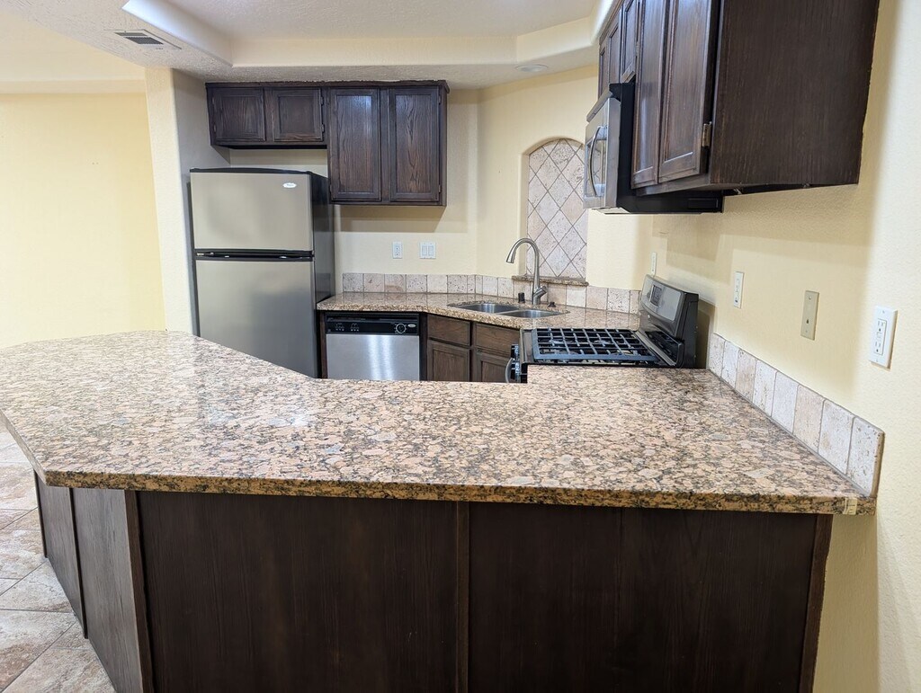 Beautiful partially furnished condo is located close to schools, shopping and restaurants. This condo provides two bedrooms, two and a half baths, and so much more. The kitchen has granite counter tops and there is tile flooring throughout. The solar tubes give off so much natural light that you'd think you left the light on! Each bedroom has its own bathroom and there is a half bath in the hallway. The landlord pays the water, trash and sewer and turns over the rights to the amenities for a $50 fee. Pets upon approval. Don't miss out on this beauty!! Call Steffani Moody at or Apply at