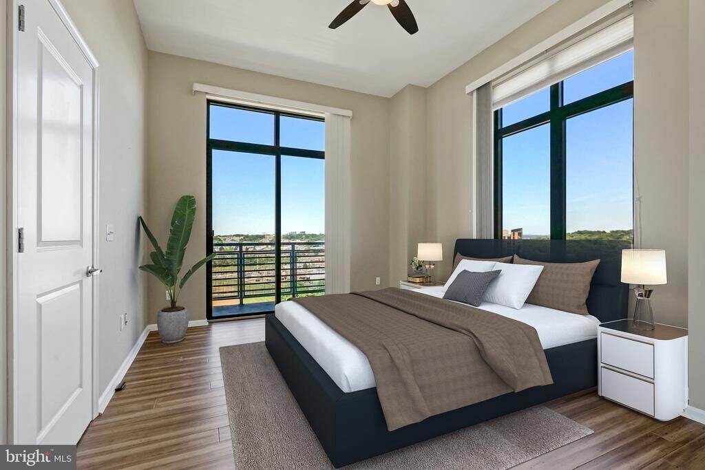 Enjoy luxury living in this light-filled corner unit with an enormous 200 square foot outdoor terrace! The 11-ft ceilings and tall windows offer natural light streaming in from multiple sides. This unit features a modern kitchen with custom pantry, stainless steel appliances, granite countertops, hardwood flooring, and in-home washer and dryer. Highlight your artwork in the gallery entry-hallway. Park in your own private, reserved parking space and store your bikes and extra belongings in your own large, enclosed storage room, with a steel door. Enjoy 24-hour access to the fully-equipped gym. Cool off with a cold beverage while lounging by the community pool. Relax with the view of the stream and park with walking and biking trails and Bike-share just across the street. The primary bedroom includes a custom walk-in closet, a soaking tub, and a glass-door shower. Located in the heart of The Village at Shirlington, a charming and vibrant urban village with outdoor cafes, a wide variety of restaurants and eateries, shops and boutiques. Enjoy being only steps away from a Harris Teeter grocery, a public library, U.S. Post Office, AMC movie theater, and a Tony award-winning live theater. Enjoy around-the-clock rapid express transit service from the Shirlington Transit Center to the Pentagon and the Pentagon City Metro Stations. And, just minutes away from nearby Washington, DC, Clarendon, Pentagon City, Old Town Alexandria, Reagan National Airport, and the Pentagon.
