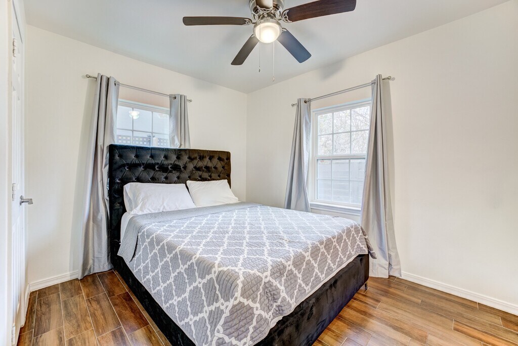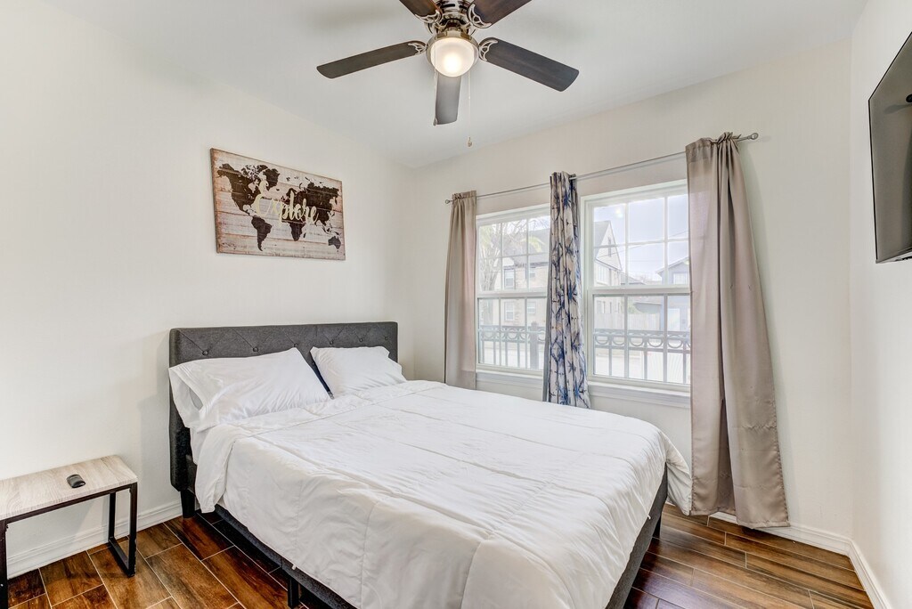 Experience elevated city living in this impeccably curated,move-in-ready 3-bedroom,2-bathroom sanctuary. As the premier residence within this sophisticated six-plex,this fully furnished home offers an expansive open-concept layout designed for effortless flow and modern comfort. The interior is defined by abundant natural lighting and a palette of refined neutrals. A gourmet kitchen serves as the heart of the home,featuring sleek quartz countertops,a subway tile backsplash,and stainless steel appliances. The living area is anchored by a plush velvet couch,perfect for both relaxation and hosting. With three full bedrooms,the space offers total flexibility for a dedicated home office or guest quarters. Both bathrooms boast clean,minimalist finishes for a spa-like feel. Positioned for the modern professional,this gated retreat offers unrivaled proximity to the Medical Center & Downtown. Effortless access to SH-288 and local markets. Water,trash,laundry incl. Gated access. MLS# 70657125