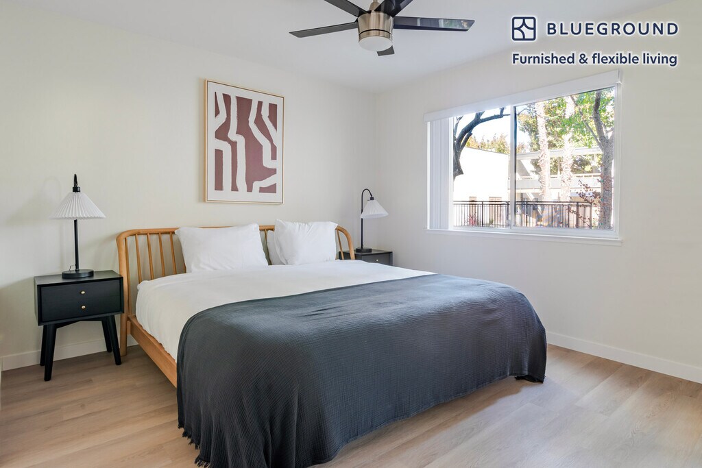 Discover the best of Palo Alto, with this one bedroom apartment in Midtown. It’ll be easy to simply show up and start living in this fashionably furnished apartment with its fully equipped kitchen, lovely living room, and our dedicated, on-the-ground support. (ID #SFO1868) The advertised rate of $3,270/month is the lowest available price, based on a 1 month(s) and 4 day(s) stay with a move-in date of November 19, 2025. If you’re looking for a 1-year stay, the rate is $3,760/month. Rates vary depending on the duration of stay, season, and other parameters. For exact pricing and additional pricing components, please visit our website and enter your desired move-in and move-out dates. The rate is applicable when billed upfront; it can be higher if billed in multiple payments. Brokers are welcome to reach out. Were you looking for an unfurnished lease? Try Blueground instead and upgrade from unfurnished to furnished living: - Furnished at rates comparable to unfurnished - No setup or furniture costs - save thousands - Move-in ready - save time, just bring your suitcase Designed with you in mind Gorgeous furniture, fully equipped kitchen, smart TV, and a premium wireless speaker are just a few of the amenities you’ll find inside this one bedroom apartment. Ideally located in Palo Alto, you’ll find a lot to love outside as well. When you’re ready to relax, you’ll be happy to discover every Blueground bedroom comes with superior quality mattresses, luxury linens, and cozy towels. We handle everything so you can simply show up and start living. This apartment also offers in-apartment laundry. Sleeping arrangements King Bed, 70.8in/180cm Amenities Building amenities unique to this one bedroom apartment include an on-site: - Dryer - Elevator - Swimming pool - Washing machine - Parking - Pets allowed Arrival and ongoing support The entire apartment is yours to enjoy! Throughout your stay, you’ll have access to our Client Experience team through the Blueground App. You can schedule additional cleanings, submit maintenance requests, and view our neighborhood recommendations with just a few taps. We’ll share all details upon confirmation of your stay. Other things to note Building amenities may have an extra cost. This Blueground apartment has flexible lease options, allowing you to book it for one month, a year, or more. Pets are welcome, though weight limits and breed restrictions apply and may incur fees. Parking is offered based on availability and is subject to a fee. We take great pride in ensuring every photo displayed is shot in our own units with our actual furnishings. That said, we regularly refresh our decor and furniture arrangement, which may differ from what’s pictured. [GO]